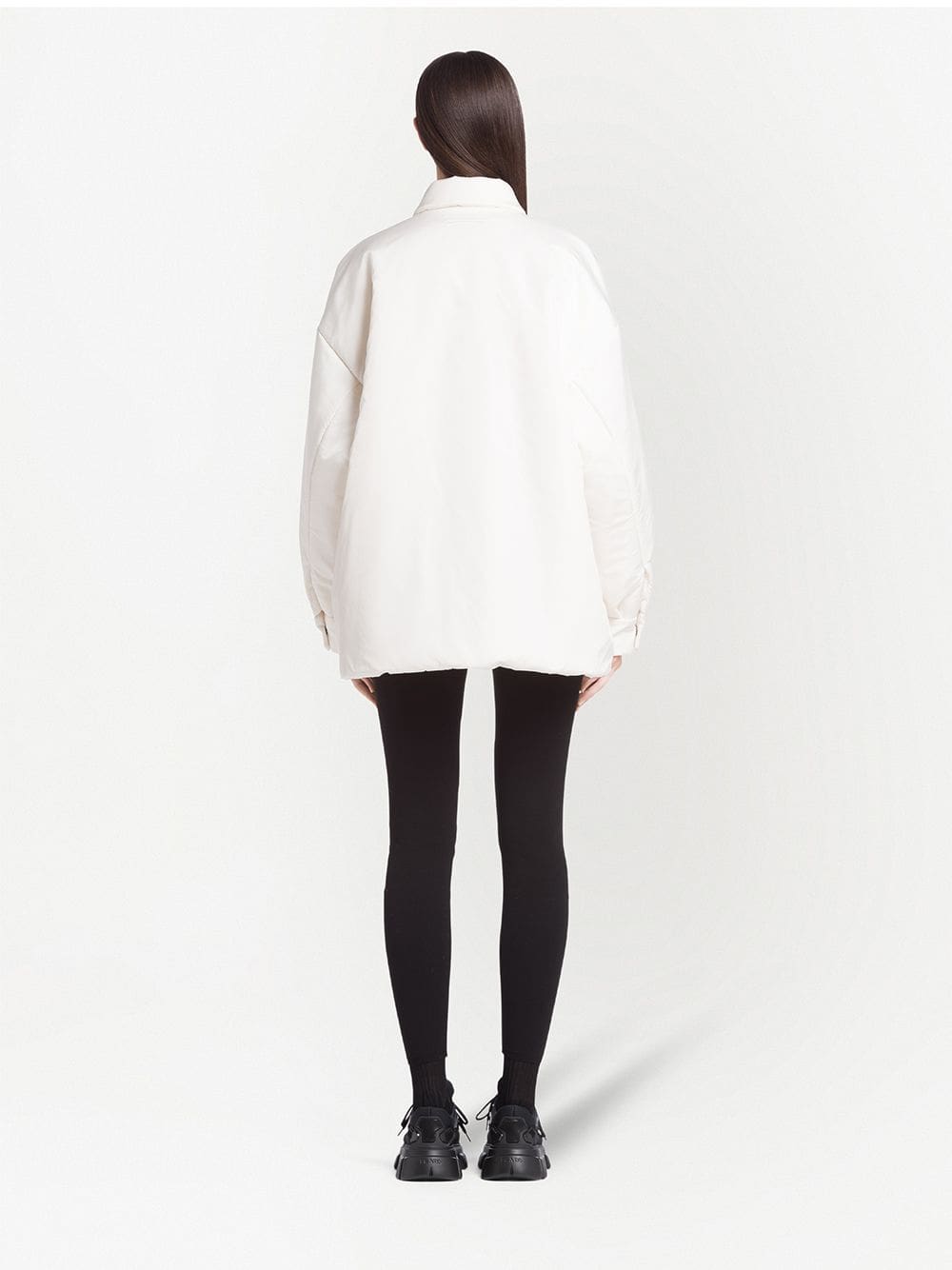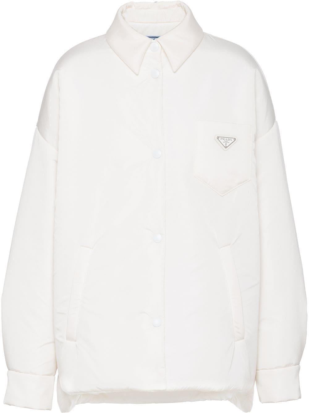 A signature of Prada's, the utilitarian style conveyed by this padded shirt jacket adds a modern feel to its design. For a branded finish, this long-sleeved piece has been accented with the label’s iconic triangle logo in the shape of a chest patch.