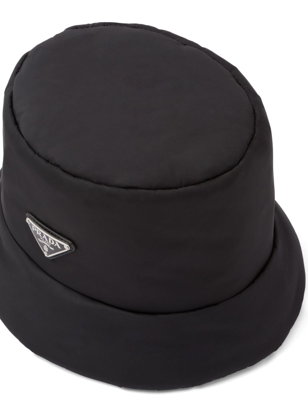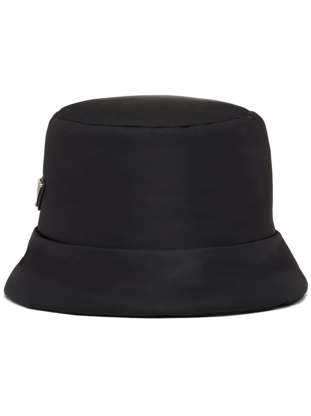Prada's triangular logo plaque is an iconic motif for the brand that transcends seasons and trends thanks to its traditional shape and refined lettering. Finding a home on the brim of this recycled-polyester bucket hat, its silver-tone hardware elevates the casual design.