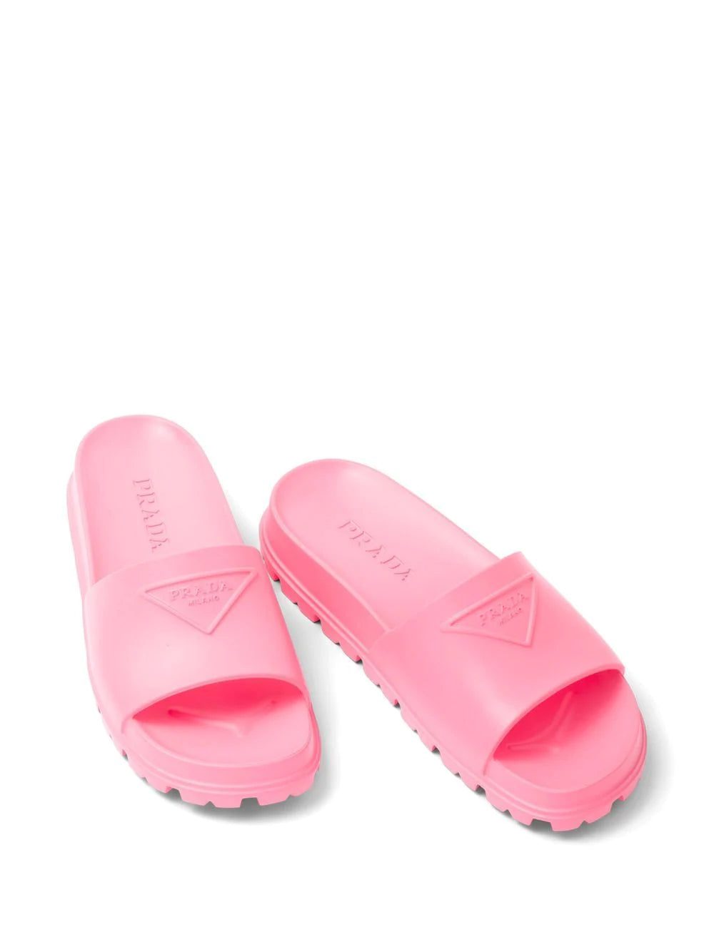 A casual design, these rubber slides from Prada pair the brand's iconic triangle logo with a bright pink hue for an eye-catching finish.
