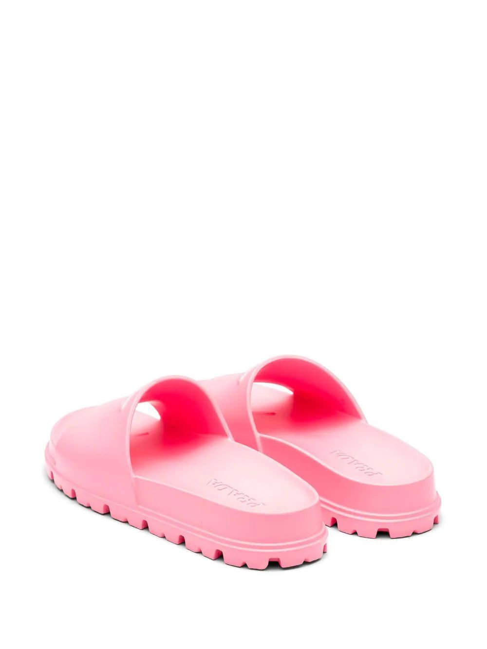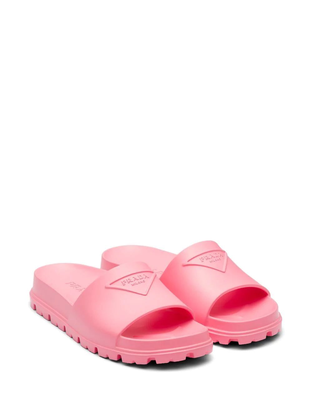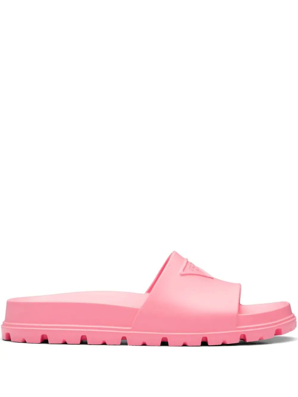 A casual design, these rubber slides from Prada pair the brand's iconic triangle logo with a bright pink hue for an eye-catching finish.