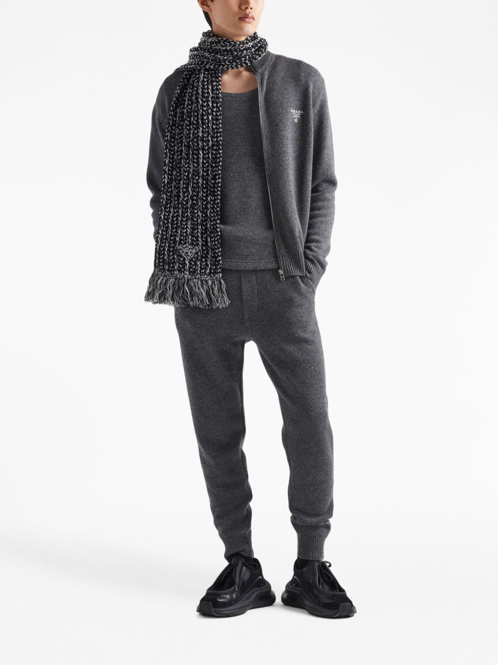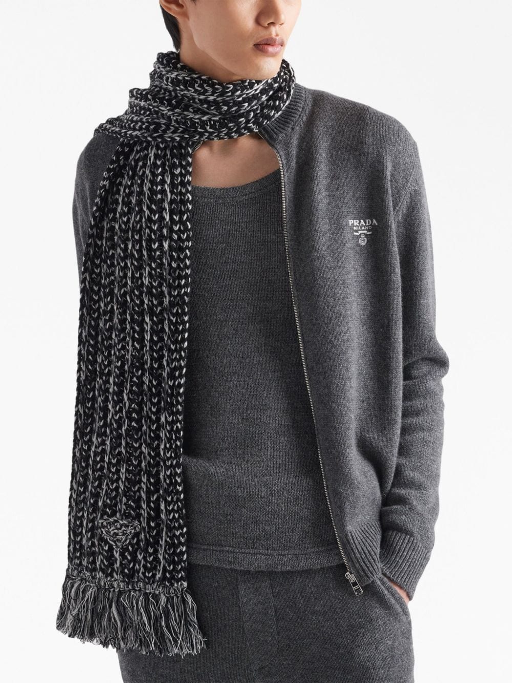 Each season marks a chance for Prada to present classic wardrobe staples with a signature stamp of approval. A fine example is this knitted sweatshirt, which is spun from sumptuous cashmere and detailed with a simple embroidered logo at the chest.