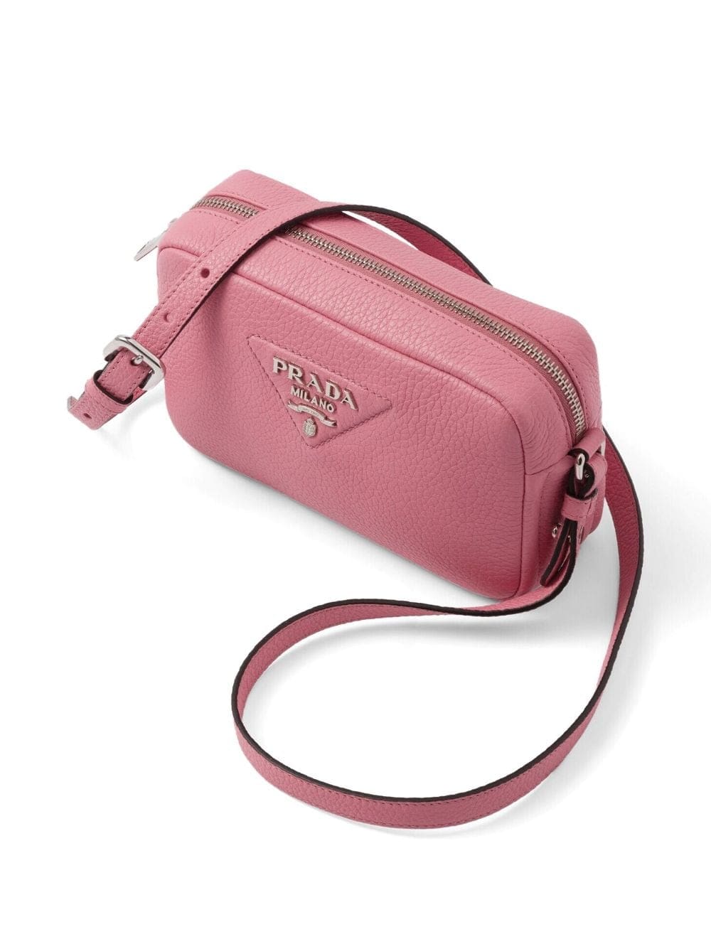 Prada showcases its signature triangle logo in modern silver hardware with this crossbody bag for SS23. The pink-hued accessory is complete with a versatile detachable shoulder strap embroidered with the brand's logo.