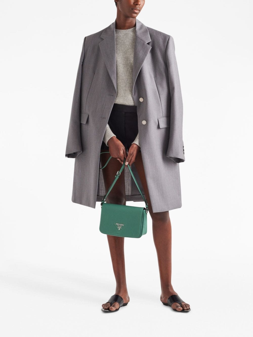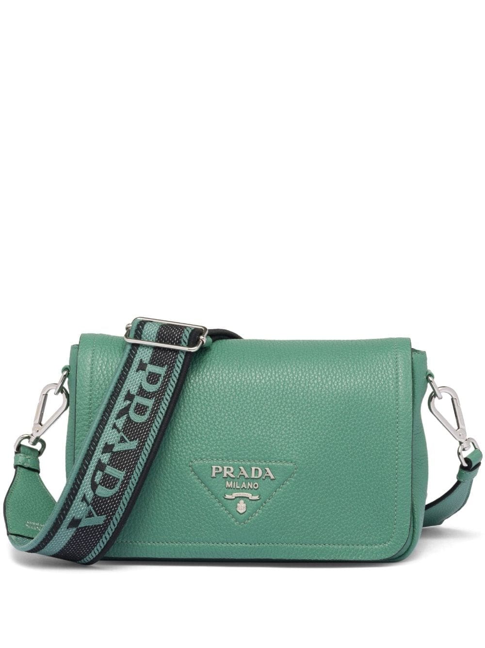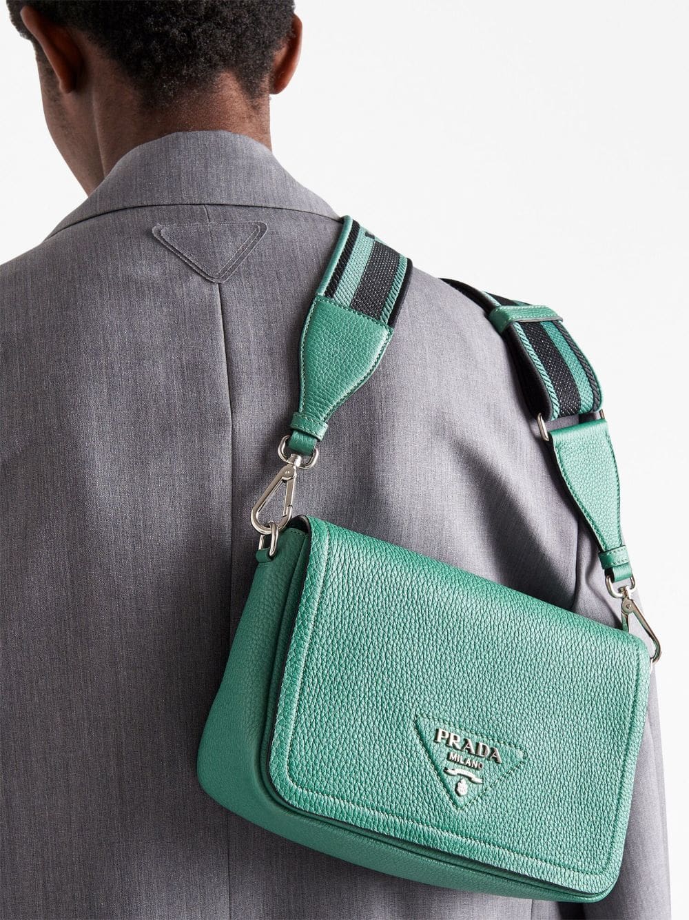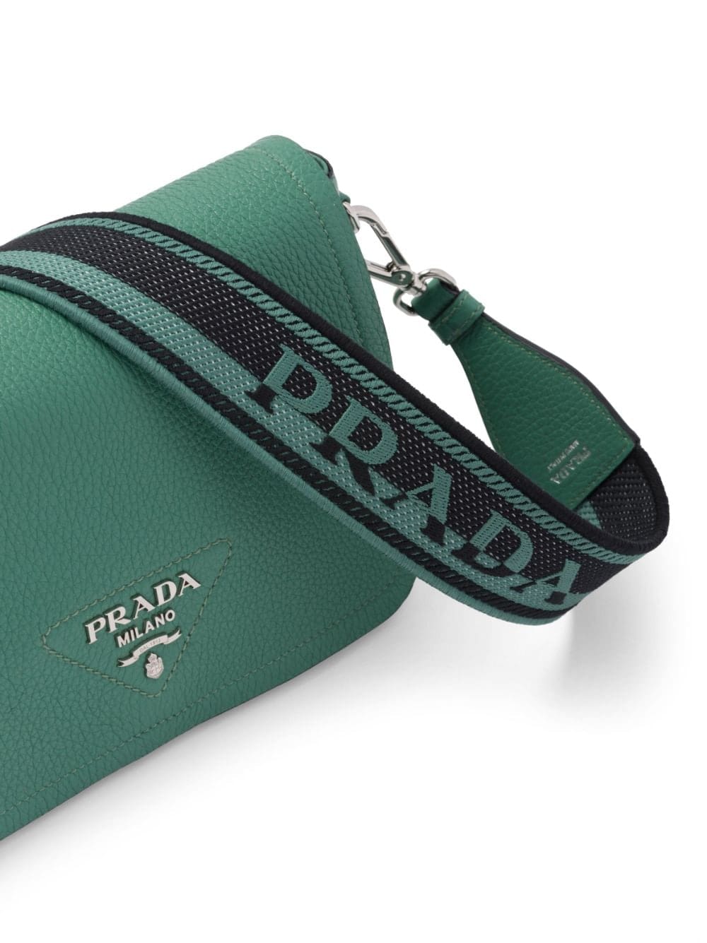 Prada's affinity for elevating classic designs with modern, functional detailing is captured in the clean lines of this leather shoulder bag. Presented in a sage green hue, it's finished with a detachable woven tape shoulder strap that can be adjusted for versatile styling.