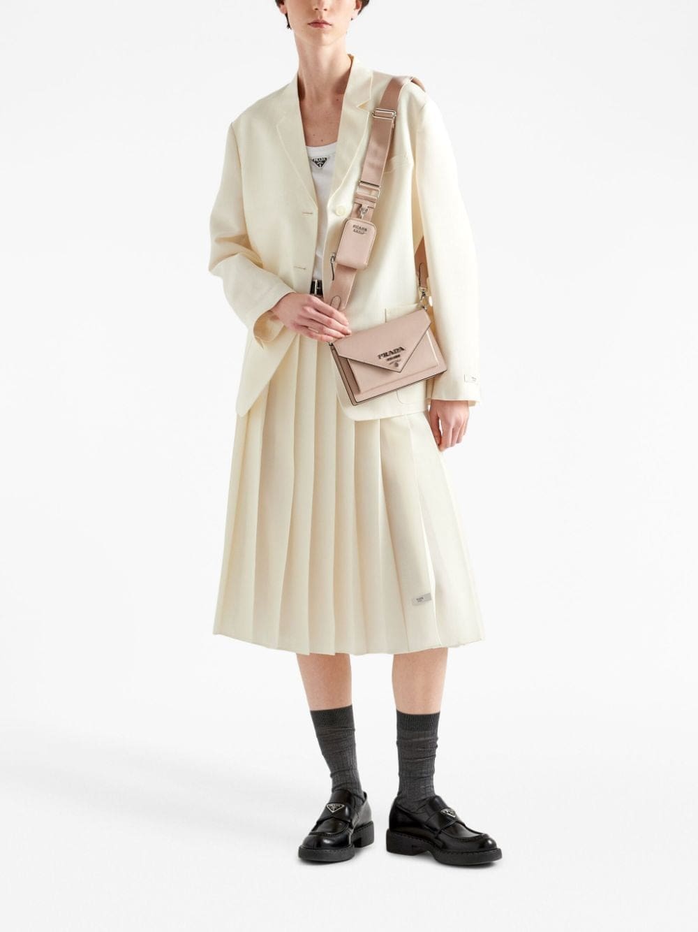 A celebration of Italian craftsmanship and signature design, this mini bag is made from Prada's Saffiano leather and centred with silver-tone logo lettering. It comes with a detachable shoulder strap strung with a branded zip pouch.