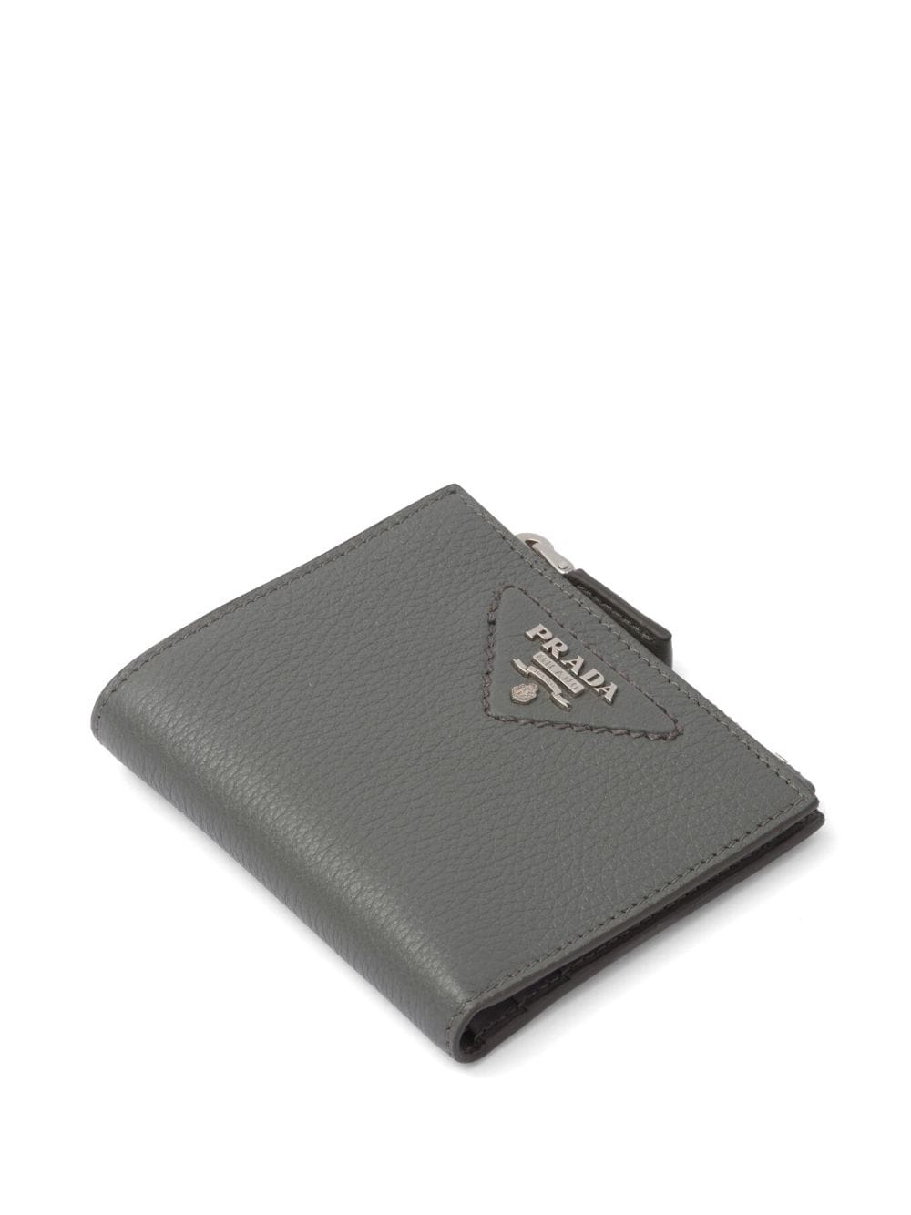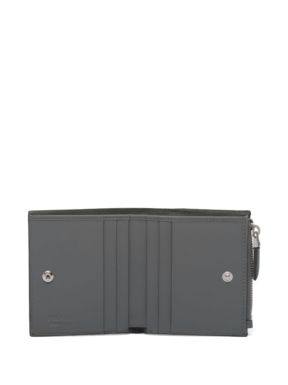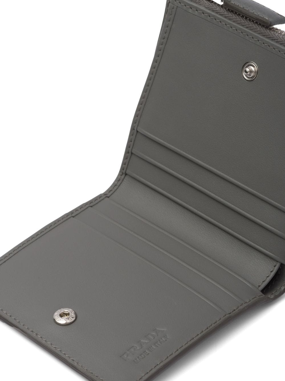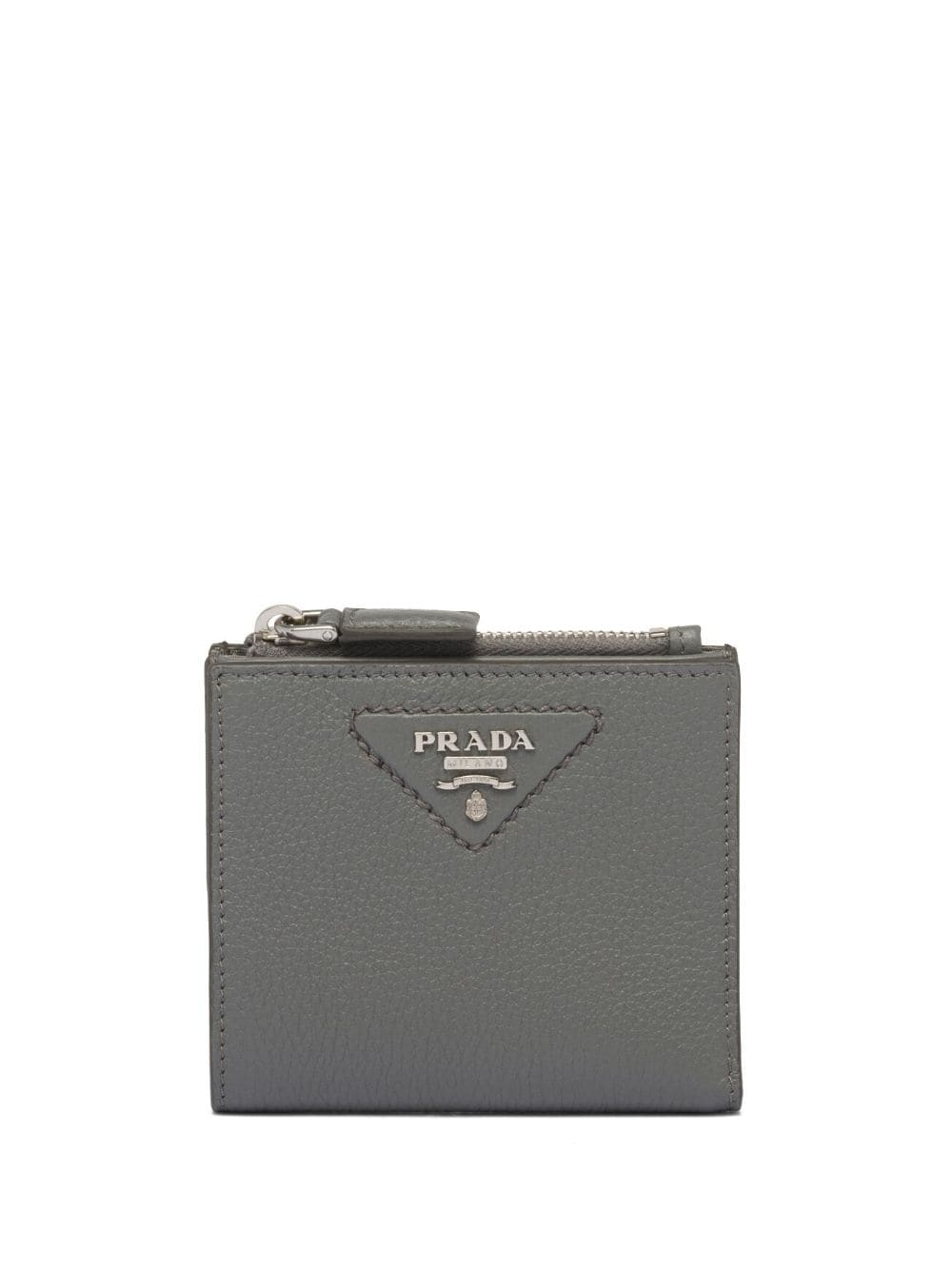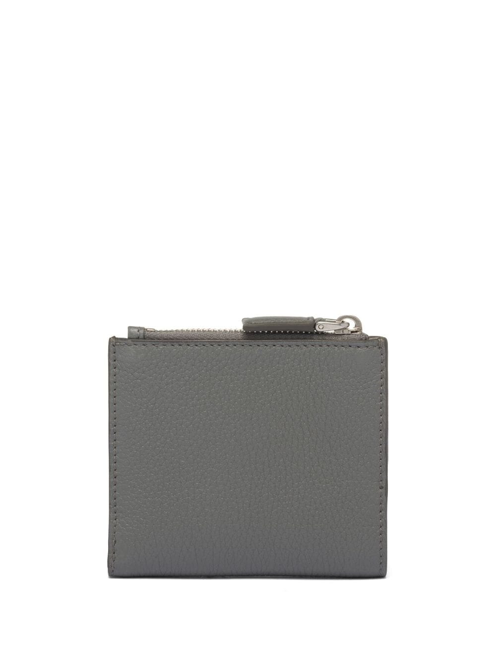 light grey leather Saffiano leather logo plaque top zip fastening internal logo stamp card slots