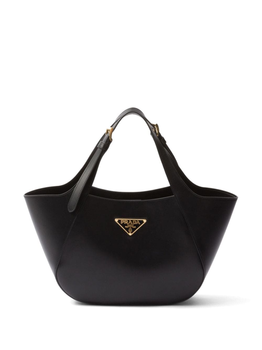 Prada medium enamel triangle logo leather tote bag