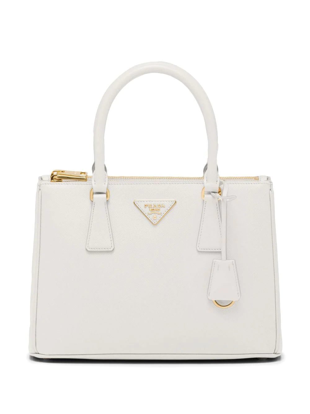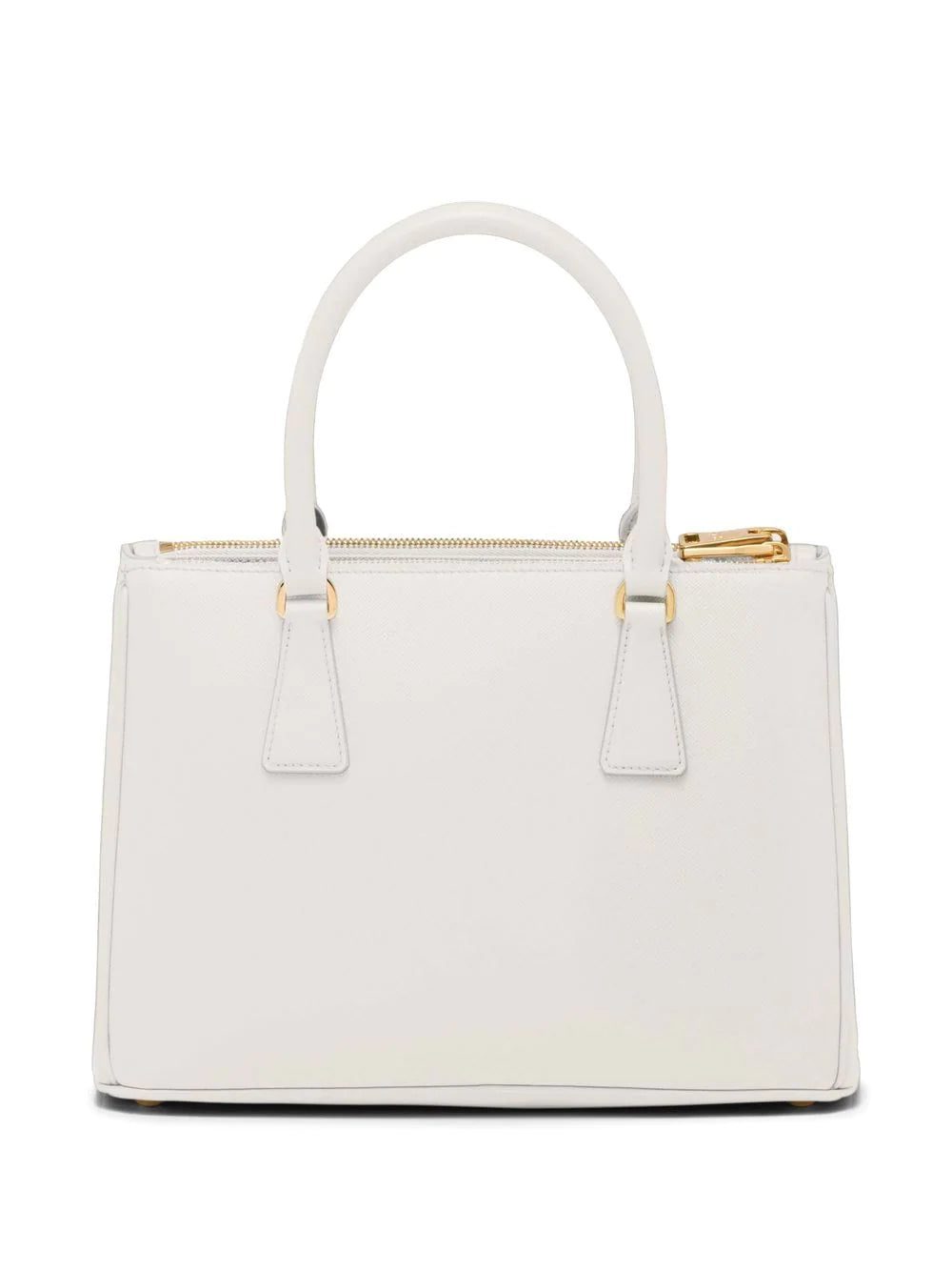 The Galleria bag is a fine demonstration of Prada's exquisite Italian craftsmanship, thanks to an innovative construction, composed of 83 pieces. Fabricated from signature Saffiano leather in a crosshatch texture, this tote bag benefits from scratch and water-resistant qualities. Meanwhile, the front of the design is accented with Prada's iconic enamel triangle logo plaque, one of the brand's most celebrated stylistic codes.