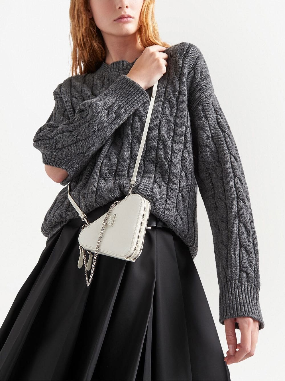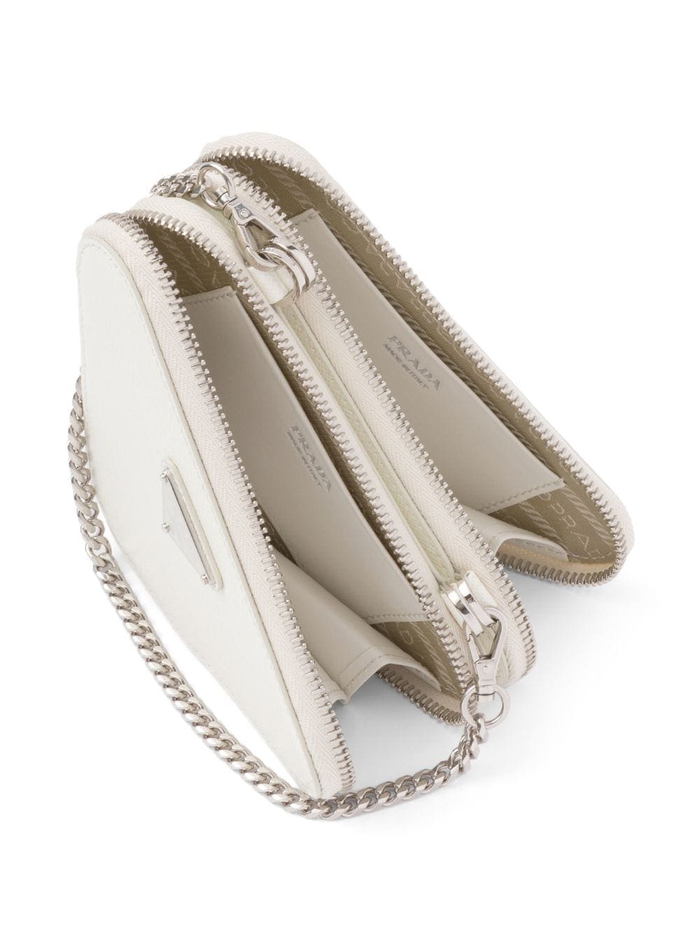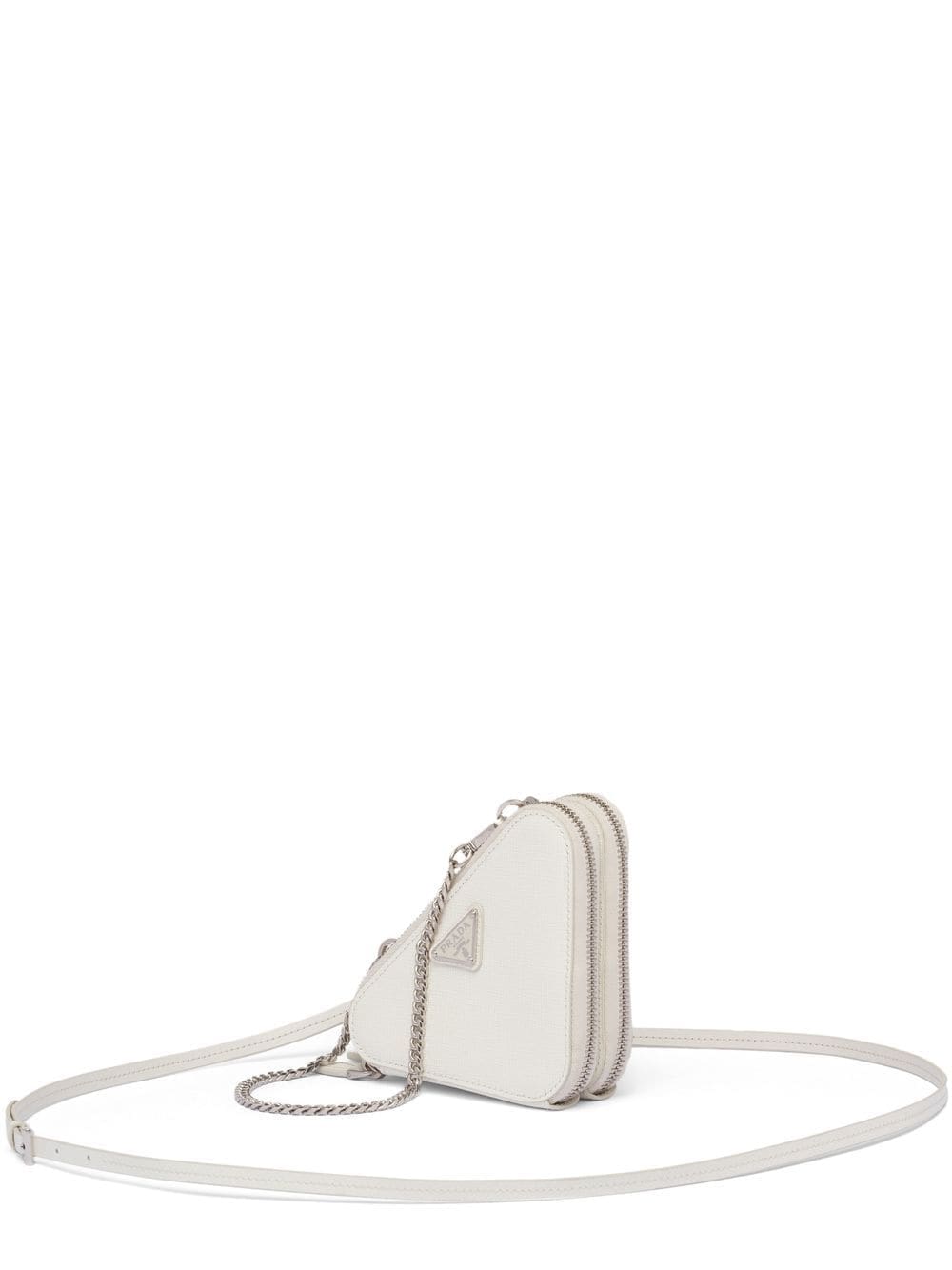 Inspired by Prada's signature logo plaque, this bag is designed as a triangle shape that showcases modernity and craftsmanship in equal measure. Made from soft leather in Italy, it is complete with refined silver-tone hardware and can be worn across the body, on the shoulder or handheld thanks to its adjustable strap.