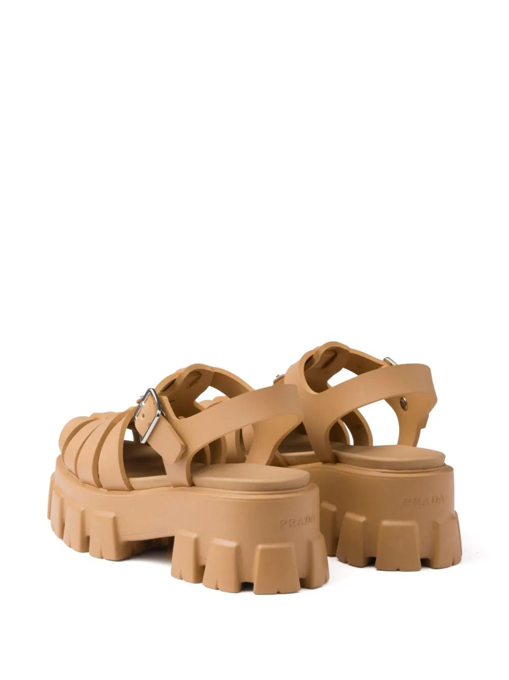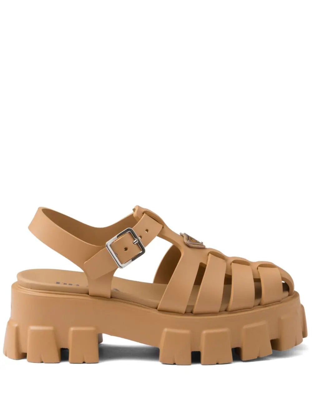 A lug tread sole and platform height lend Prada's Monolith sandals a streetwear-inspired feel. They're made in Italy from matte-finish rubber and branded at the front with the house's iconic triangle plaque in enamel and silver-tone hardware.