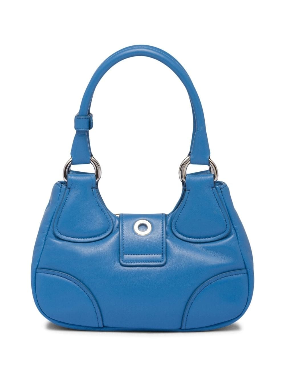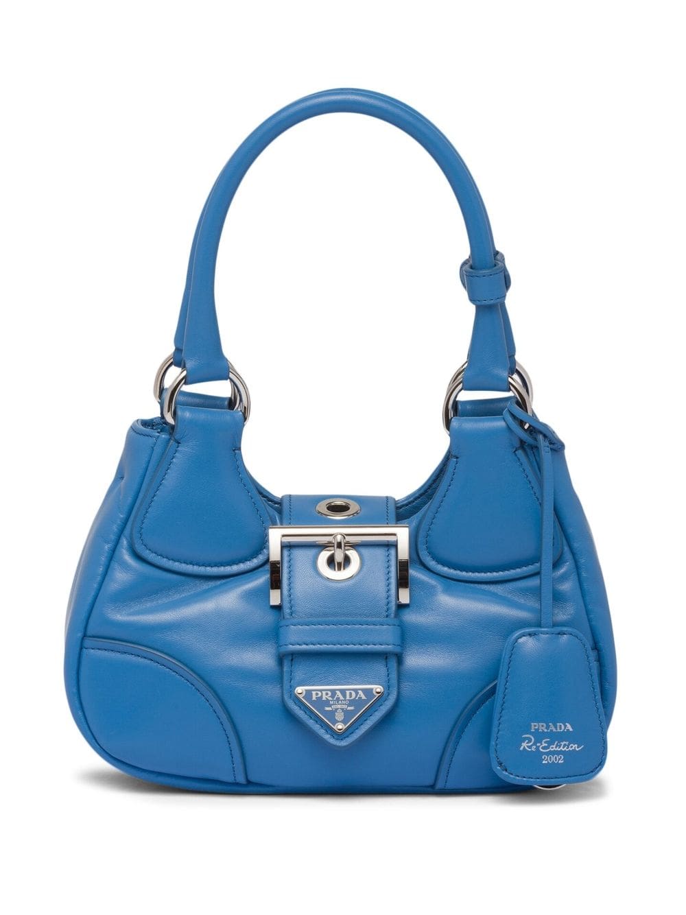 Reworking an iconic model from the 2000's, Prada introduces its Moon bag crafted from soft nappa leather. Rendered in a deep blue hue, it reimagines traditional elements in a contemporary way through its padded construction and logo-plaque buckle fastening.