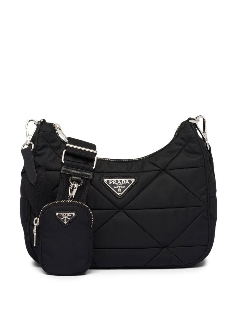 Prada finds new and inventive ways of incorporating its signature triangle symbol into its designs, showcased here on the quilted pattern of this bag. The practical shoulder design is crafted in the brand's signature Re-Nylon fabric, and finished with a detachable pouch.