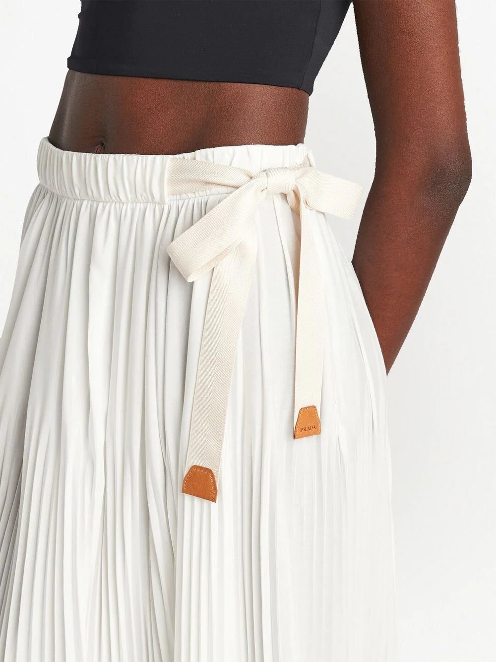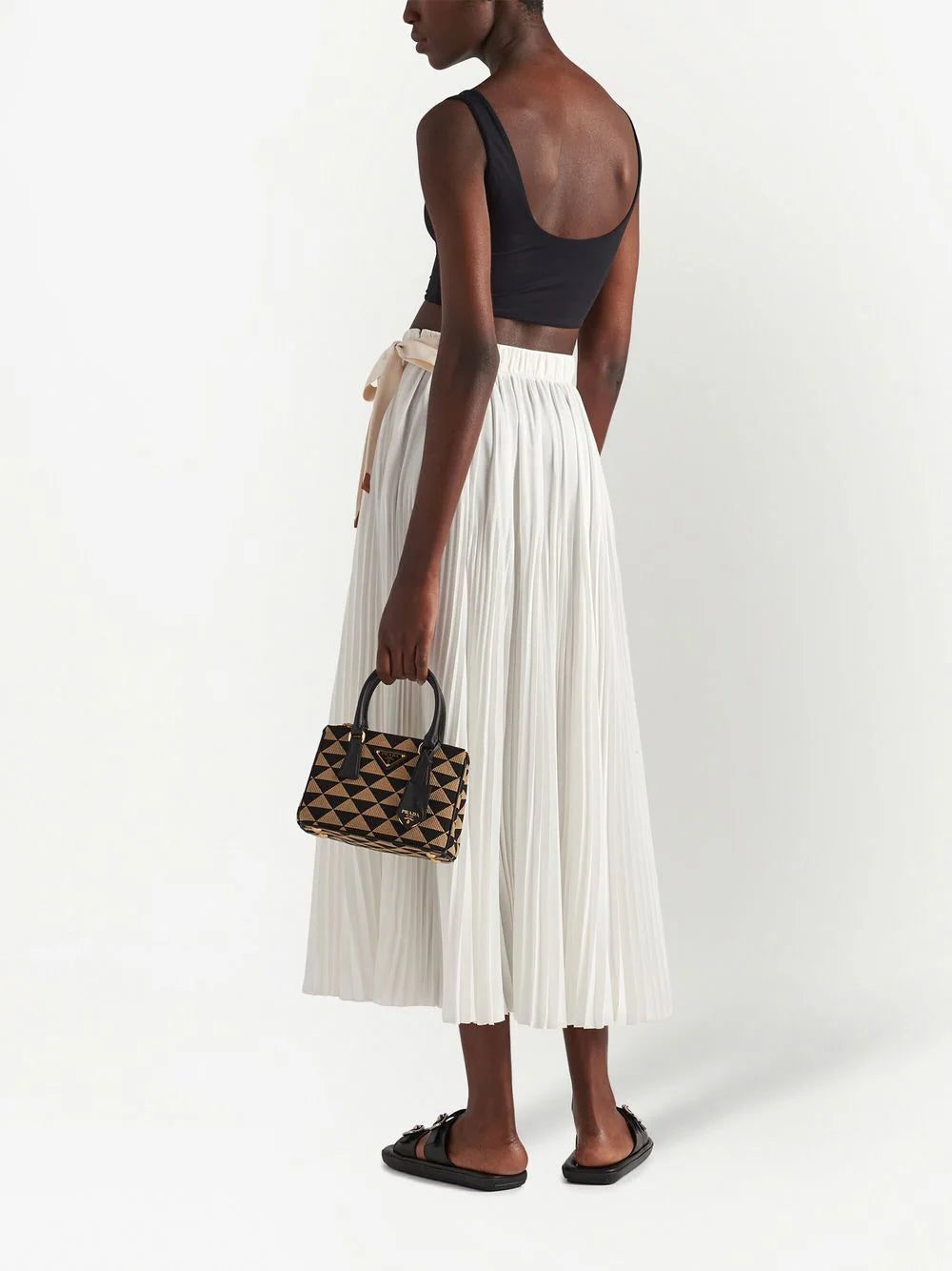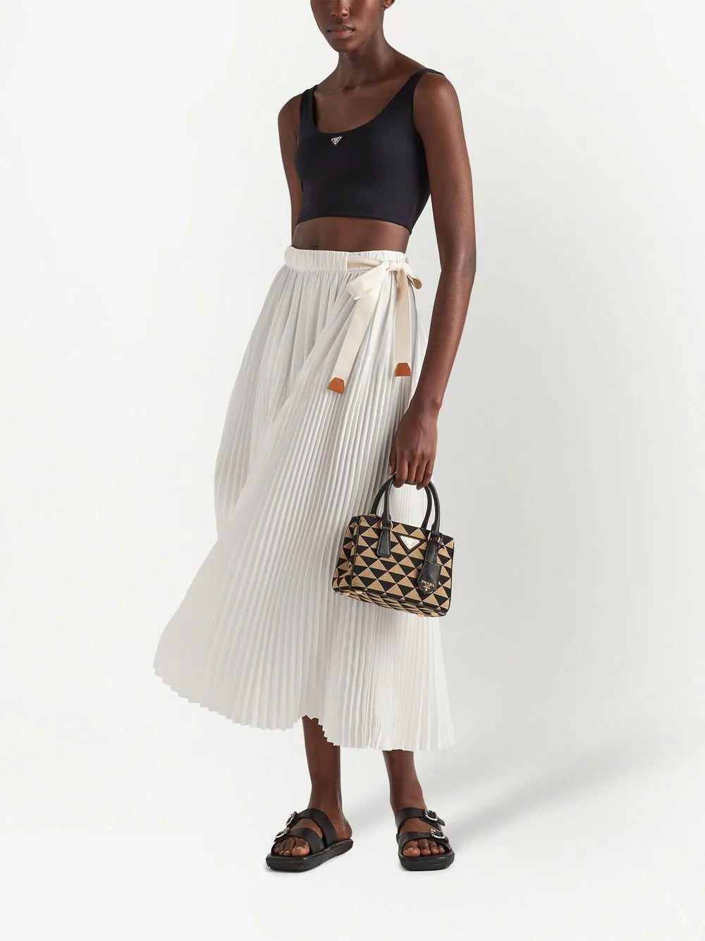 Designed to move with fluidity, this midi skirt from Prada's SS22 collection is made from soft crepe de chine. The flowy fabric is accentuated by playful pleats throughout.
