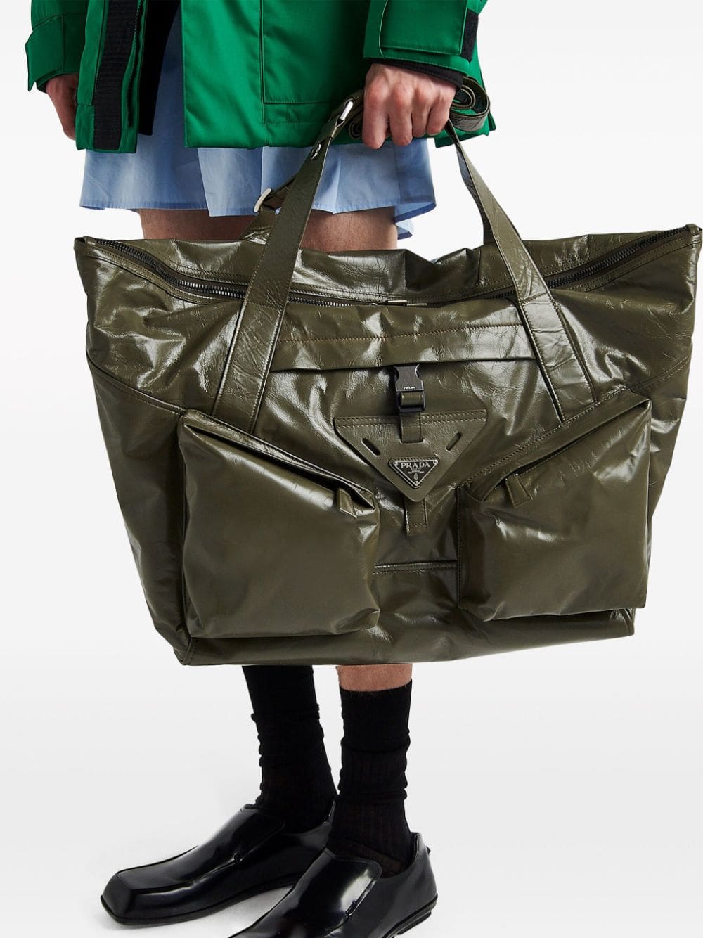 PRADA SHINY LRG SIDE POCKETS TOTE BAG GREEN