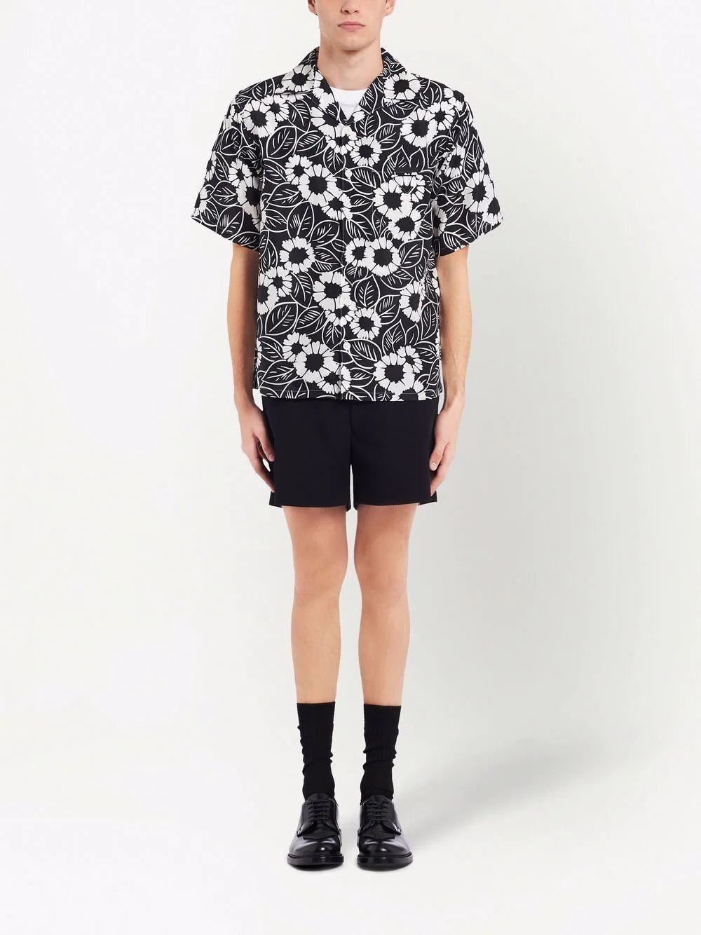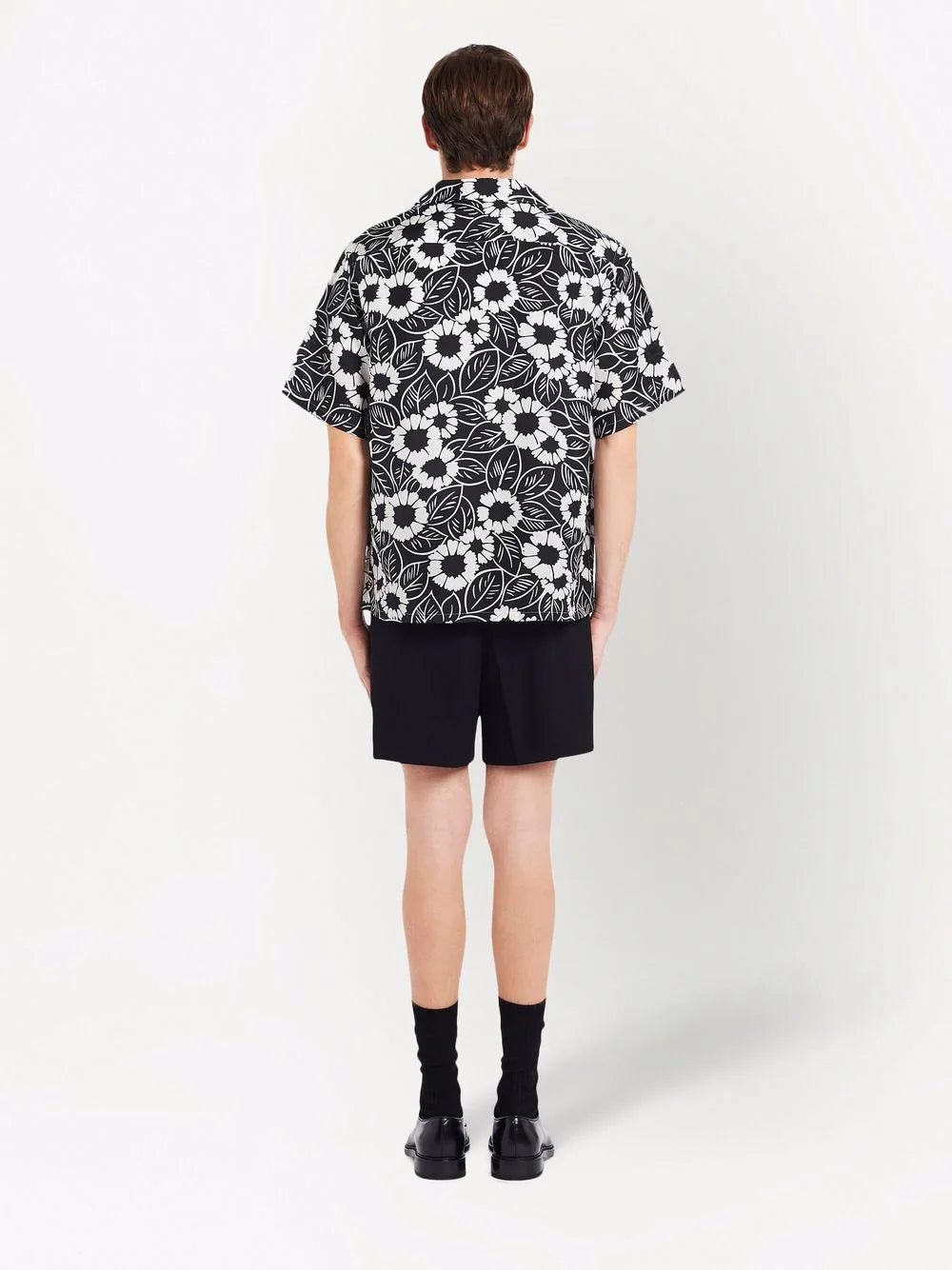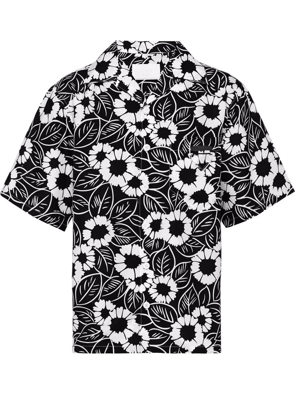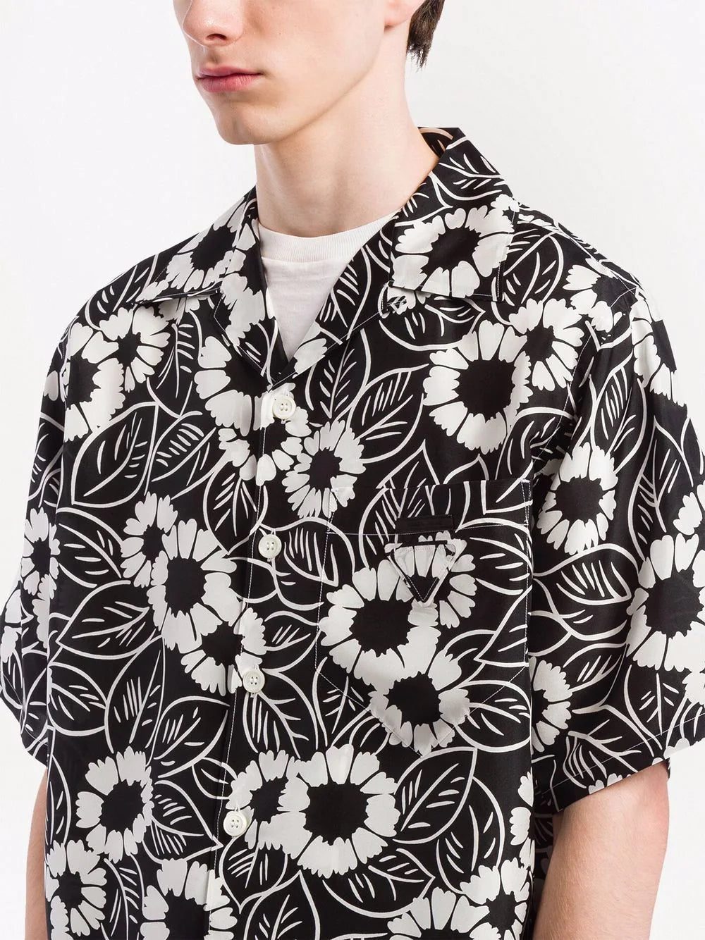 Prada's SS22 menswear collection is awash with summery prints as showcased on this short-sleeved twill silk shirt that delights with its joyful all-over floral motif.