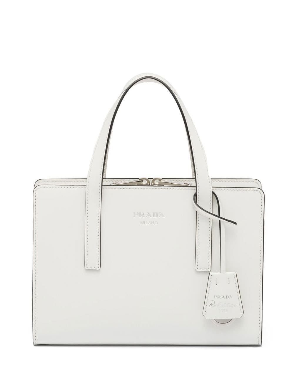 white/black leather silver-tone hardware debossed logo to the front logo tag two-way zip fastening detachable shoulder strap two flat top handles