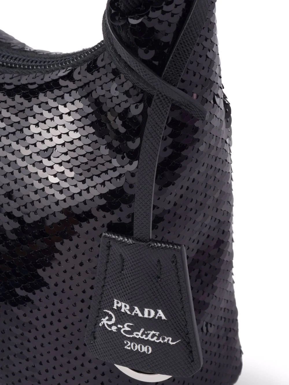 Prada revisits one of their iconic styles with this Re-Edition 2000 shoulder bag. Crafted in the brand's signature Re-Nylon - a material made from recycled plastics found in the ocean - the design is fully covered in sequins for a glimmering effect.