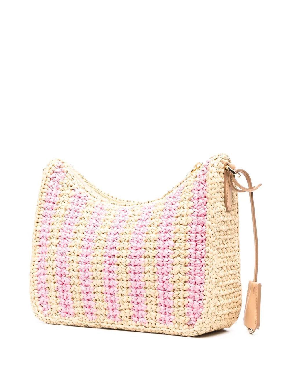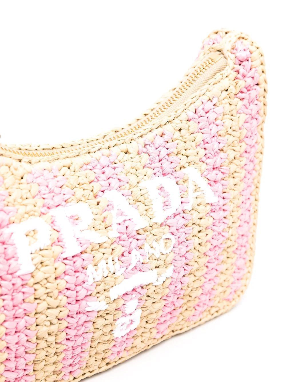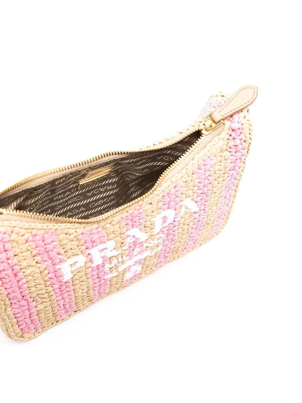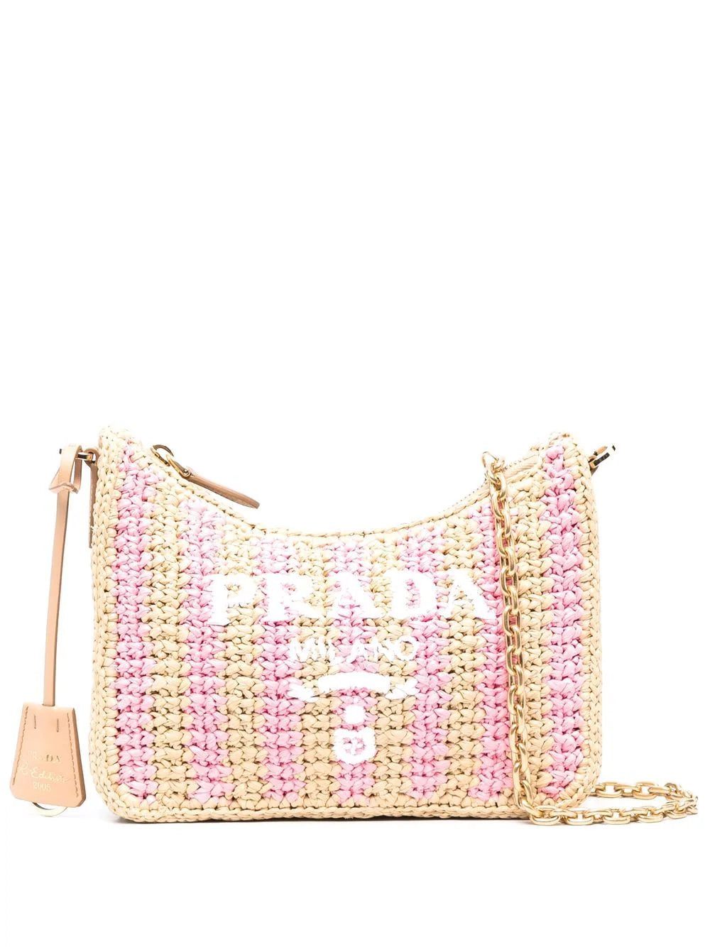 Prada reimagines one of its signature styles with this Re-Edition 2005 woven raffia shoulder bag. Crafted in Italy in a pink and brown colourway, the brand's heritage label is positioned to the front in a contrasting white hue.
