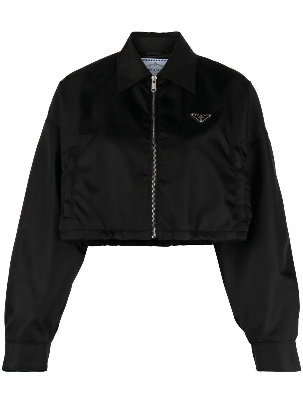 Adorned with the signature triangle logo plaque for a recognisable look, this Prada bomber jacket is constructed in a cropped cut that provides a contemporary touch.