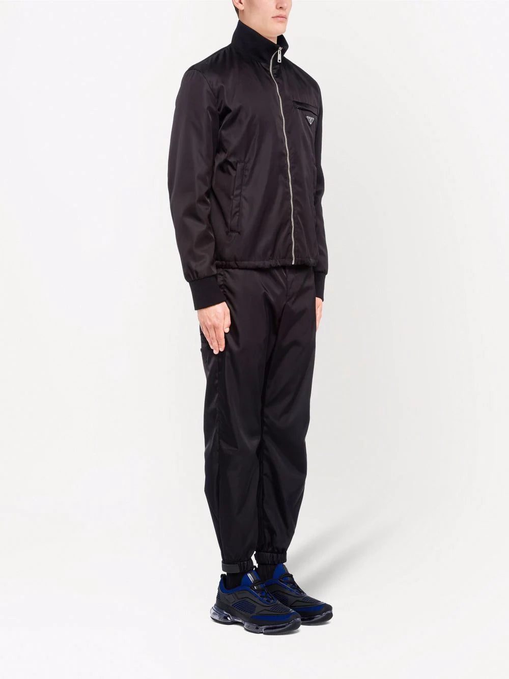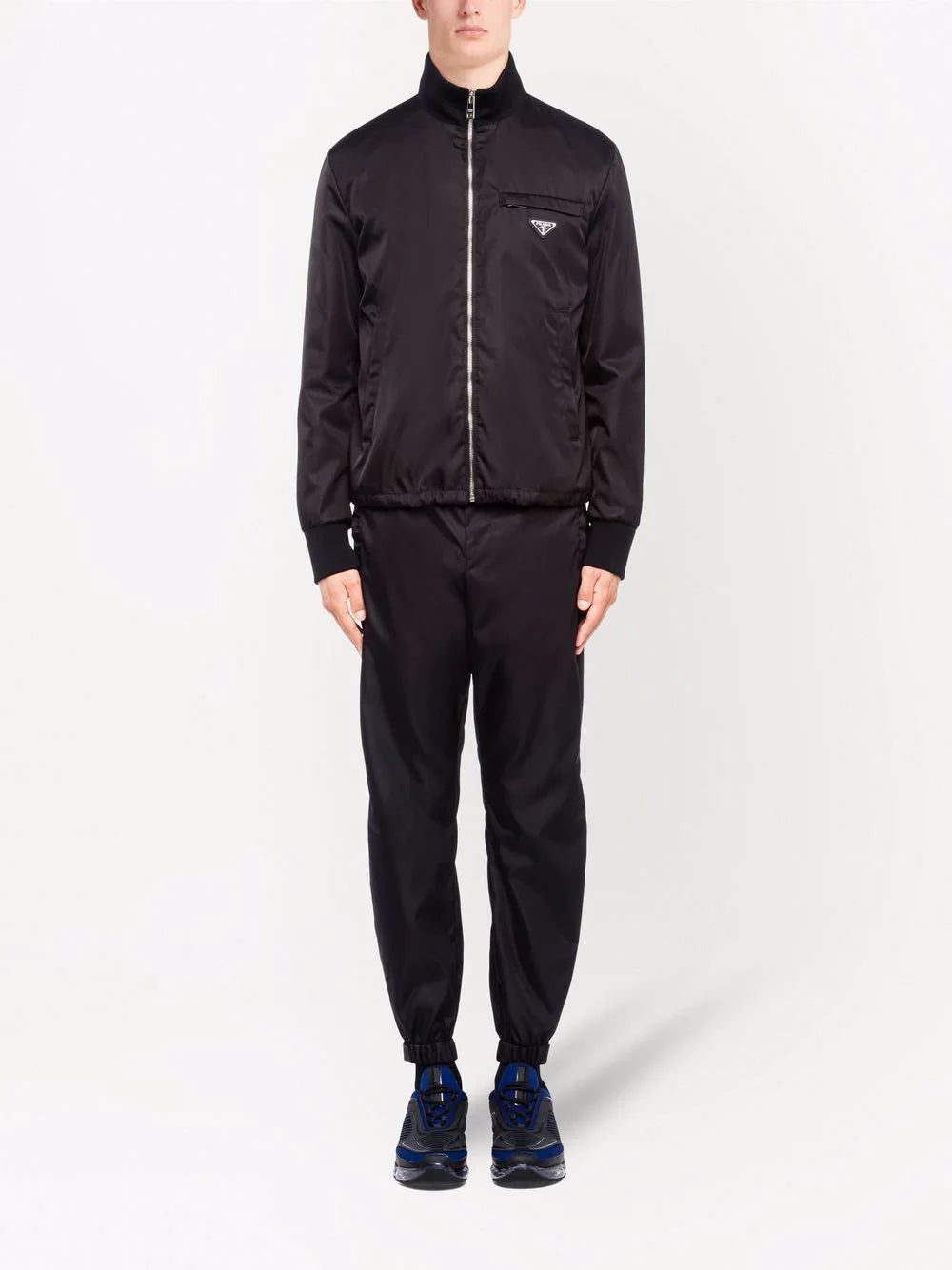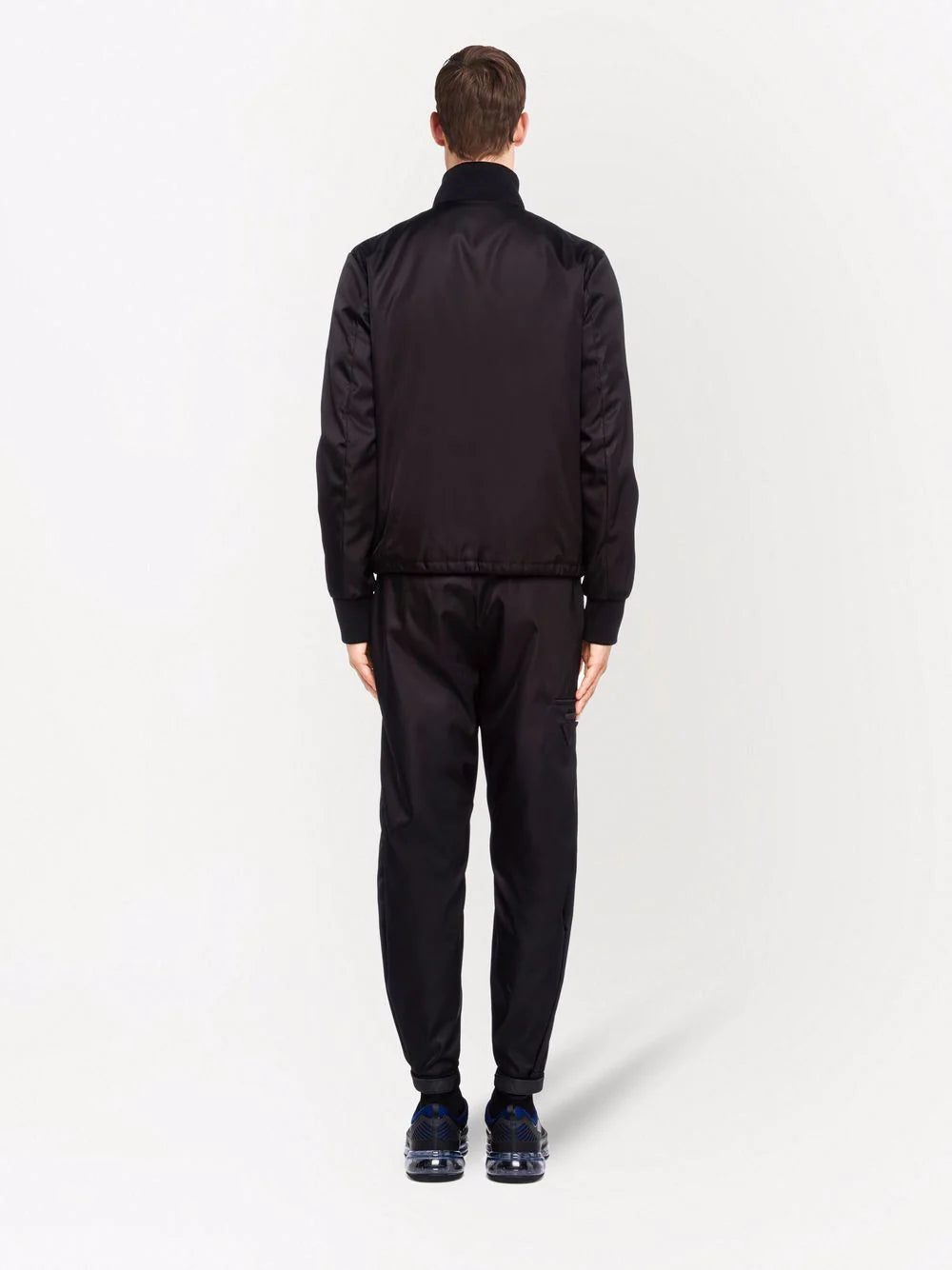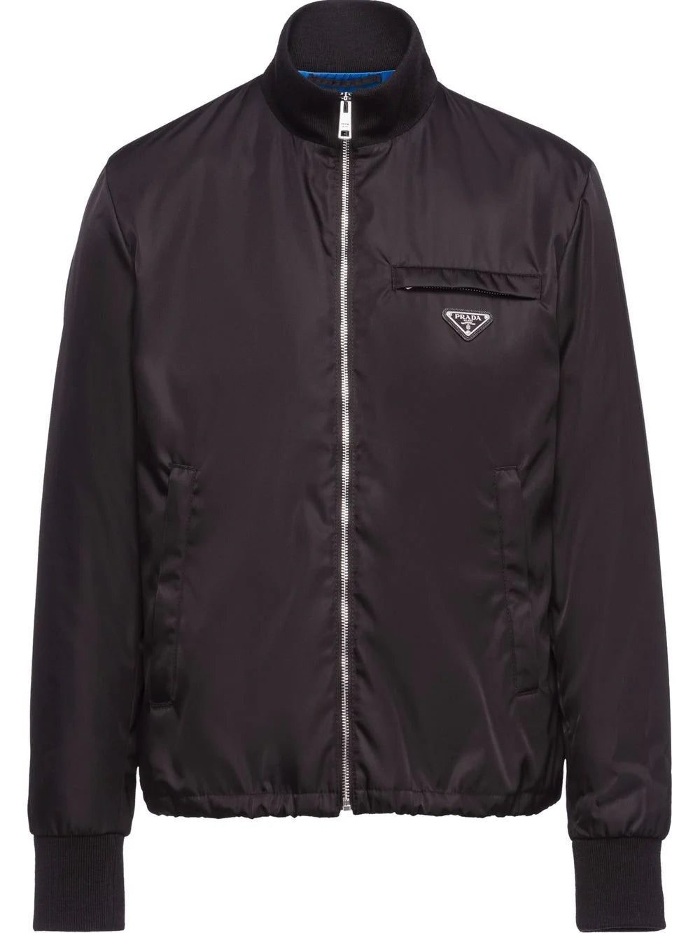 Prada's iconic nylon goes sustainable thanks to a recycled version. This navy blue jacket boasts a sleek construction, punctuated with a silver-tone logo.