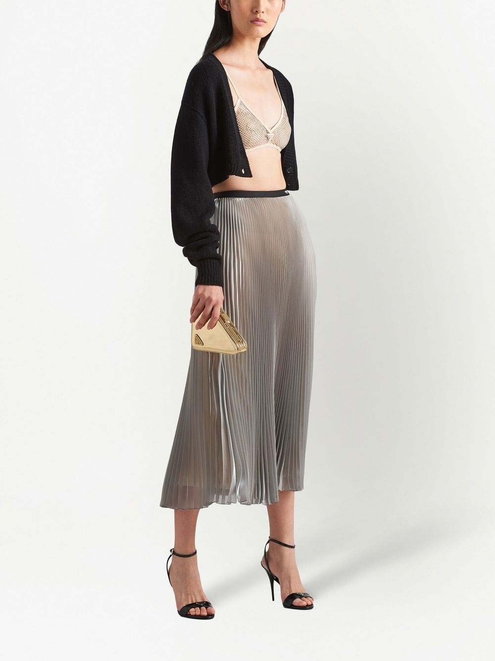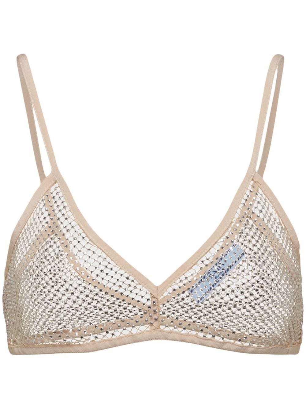 From Prada, this bralette top pairs mesh detailing with shimmering rhinestone embellishment, creating a modern finish for the design.