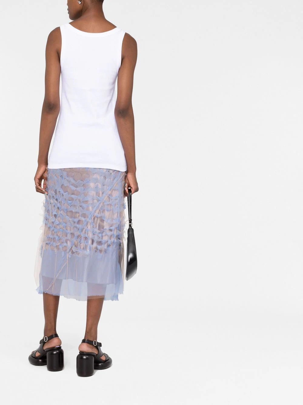 logo-plaque sleeveless vest top from PRADA featuring white, cotton, enamel triangle logo, square neck, sleeveless and straight hem.