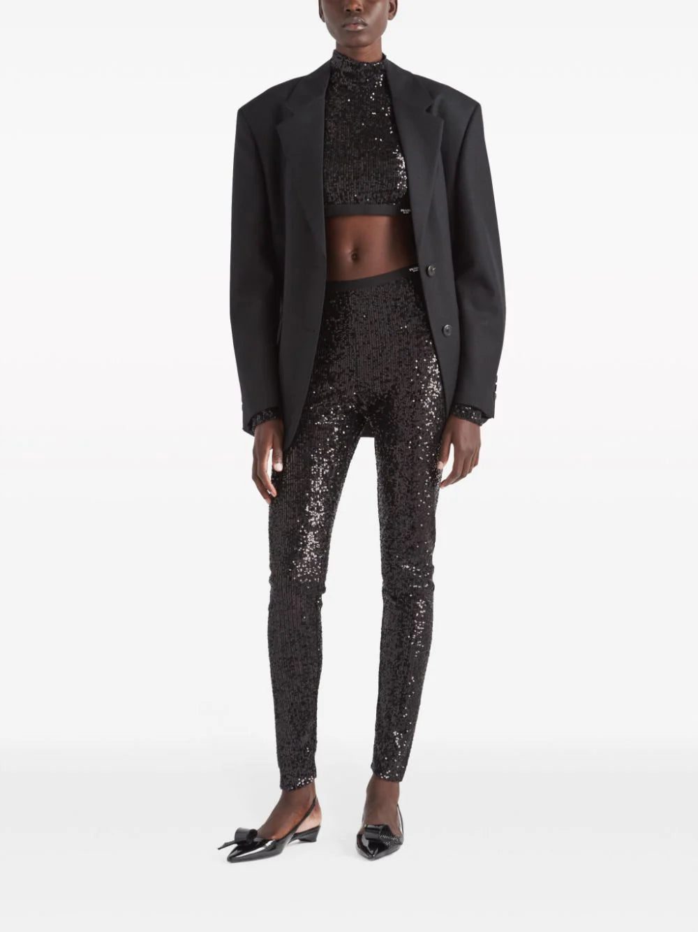 Prada's top effortlessly fuses minimalism with maximalism. Cut in a clean-lined silhouette, it's decorated with scores of glistening sequins.