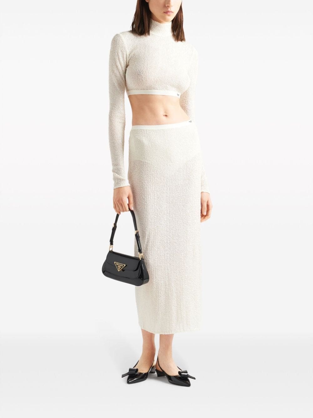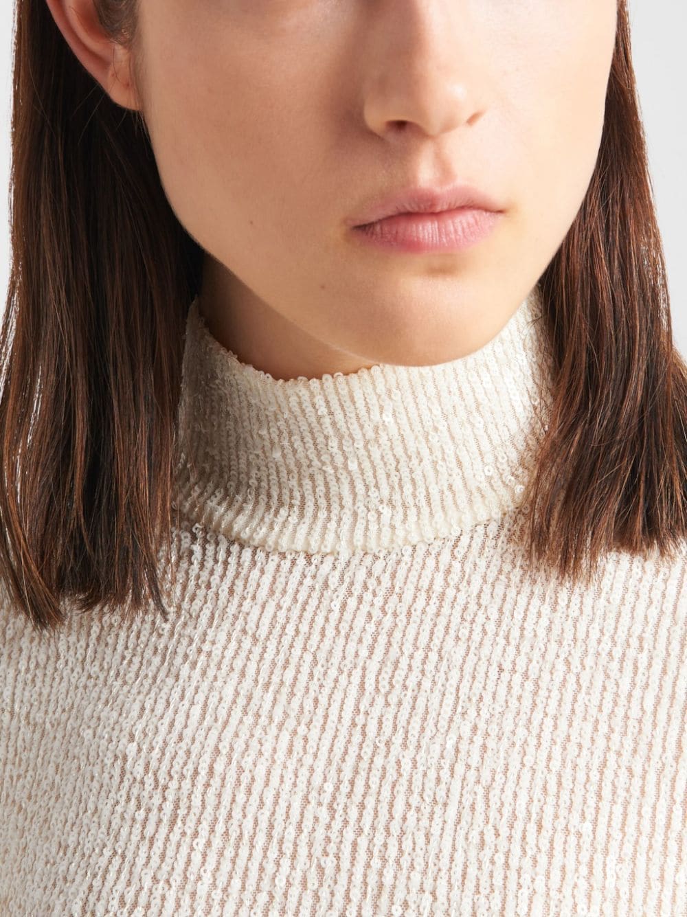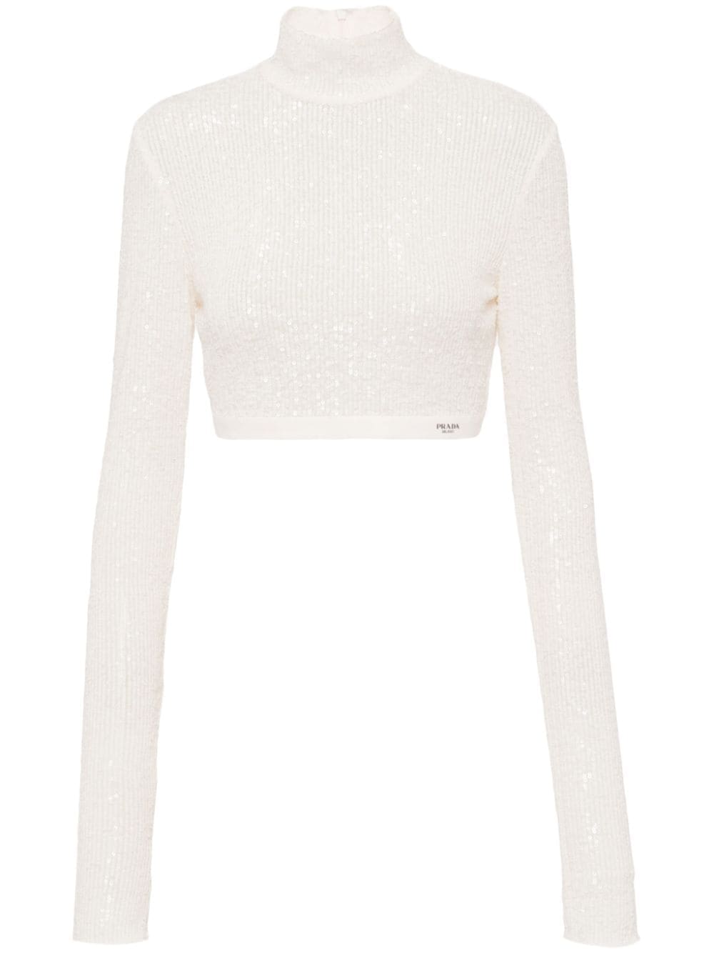 Prada's top effortlessly fuses minimalism with maximalism. Cut in a clean-lined silhouette, it's decorated with scores of glistening sequins.
