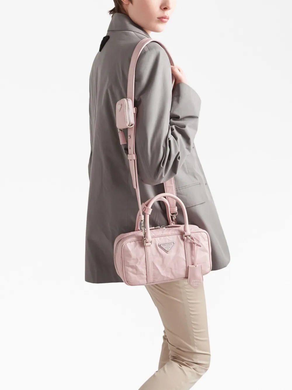 An ode to noughties style, this Prada tote bag is crafted to a compact, rectangular shape with two top handles and a detachable shoulder strap with a zip pouch. The brand's triangular logo sits front and centre.