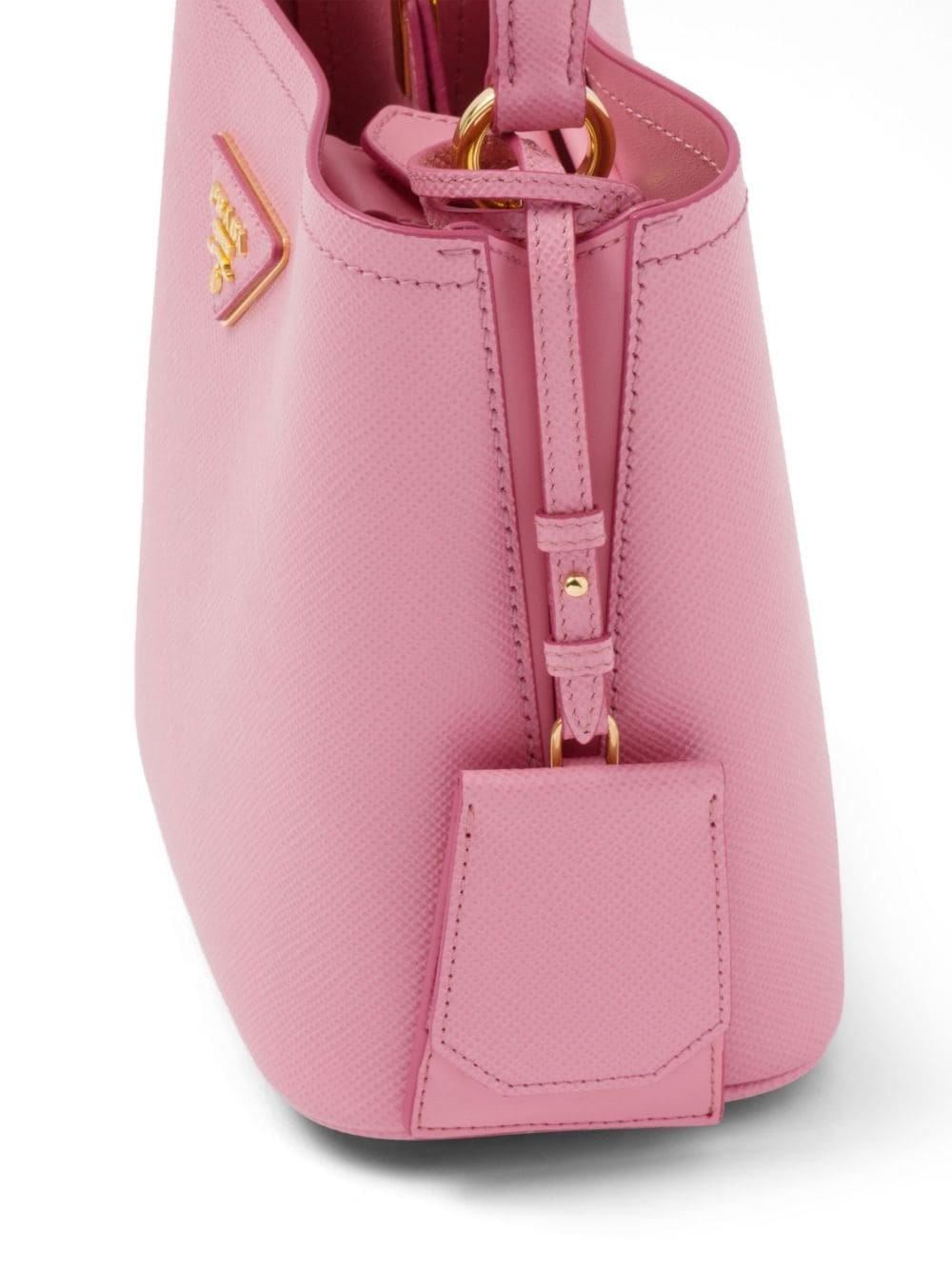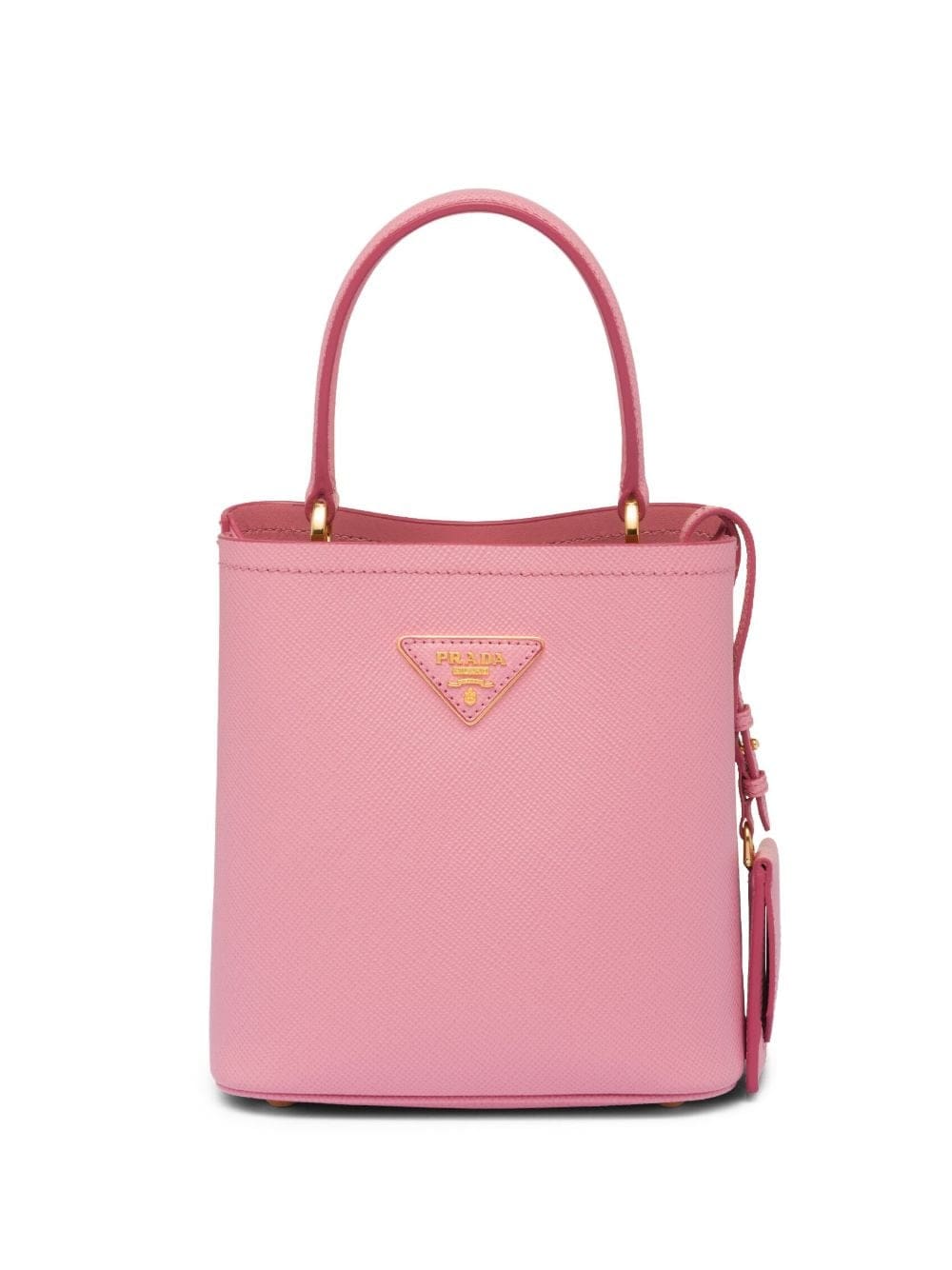 This iteration of Prada's Panier bag is crafted from the label's signature Saffiano leather with a crosshatch texture. Its bucket-like silhouette is fitted with a single top handle and shoulder strap, and boasts the iconic enamelled logo at the front.