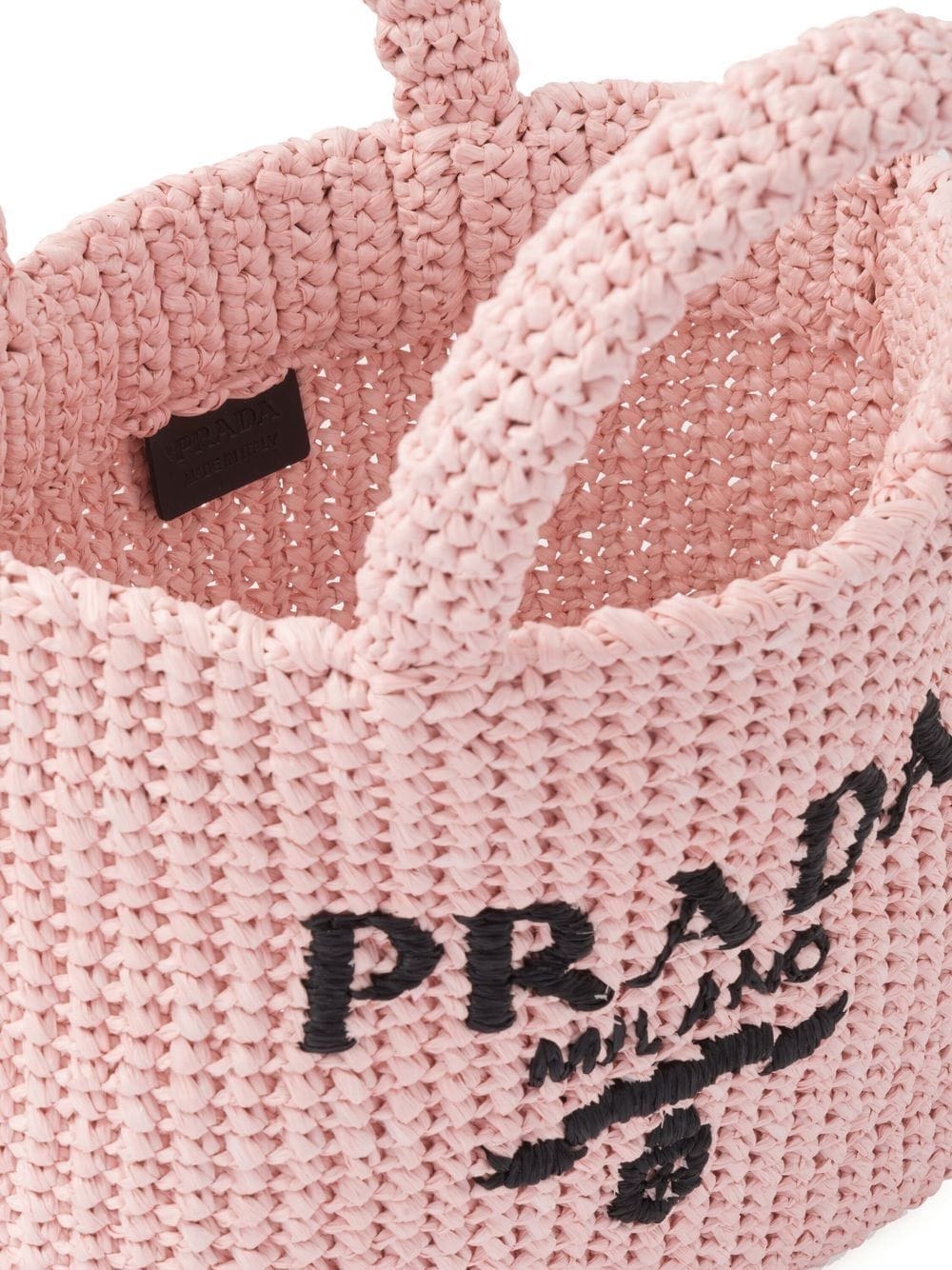 Evocative of summertime, Prada's logo-print tote is crafted from raffia and decorated with a contrasting logo embellishment at the centre.