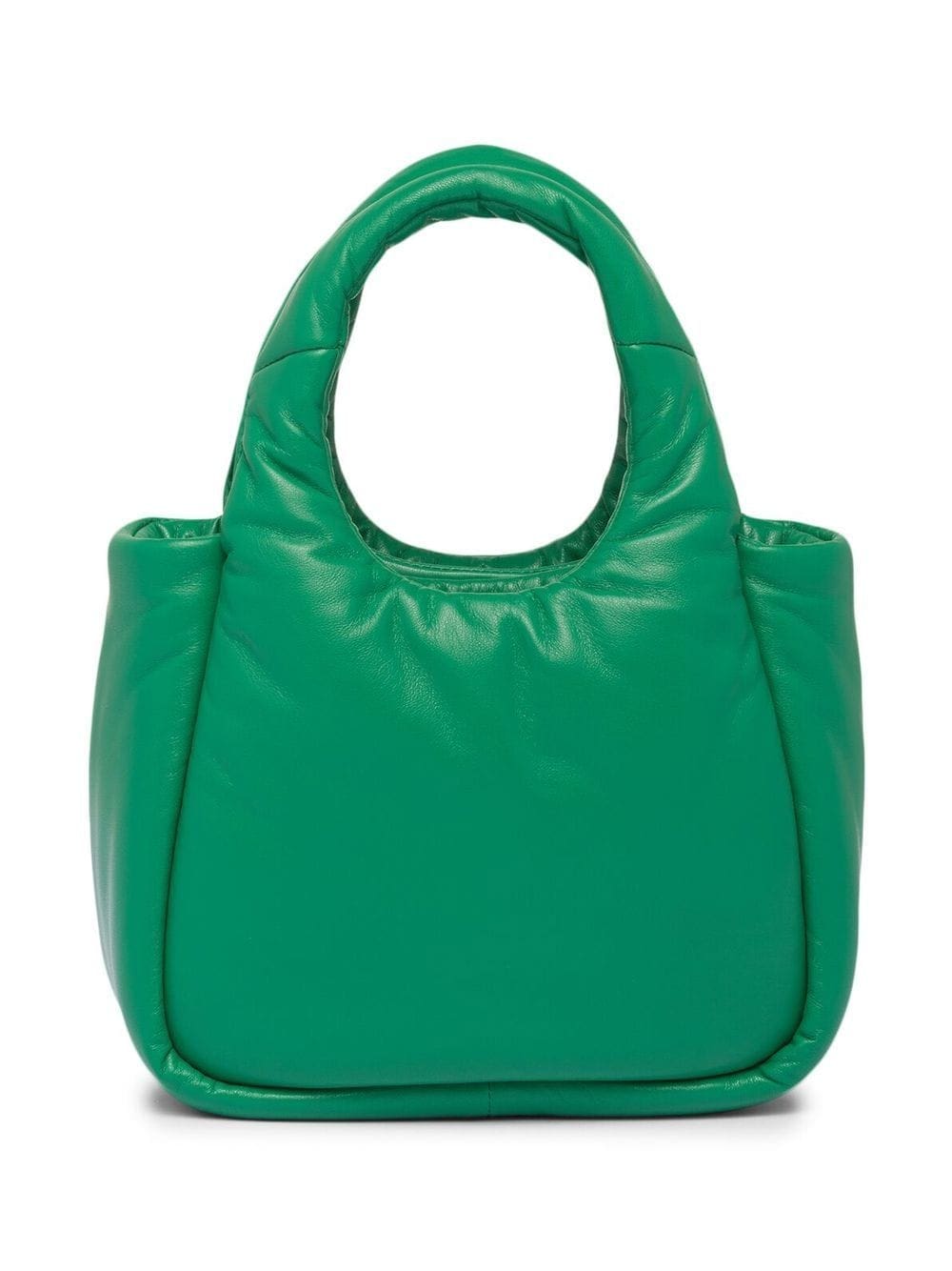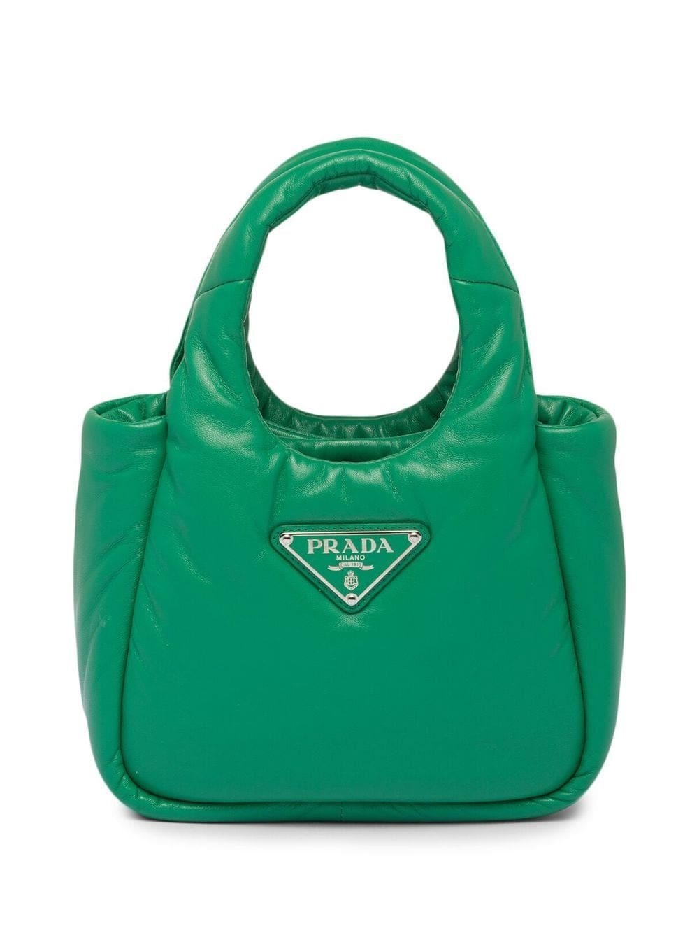 green nappa leather padded design enamel triangle logo silver-tone hardware internal logo plaque magnetic fastening two top handles adjustable detachable shoulder strap