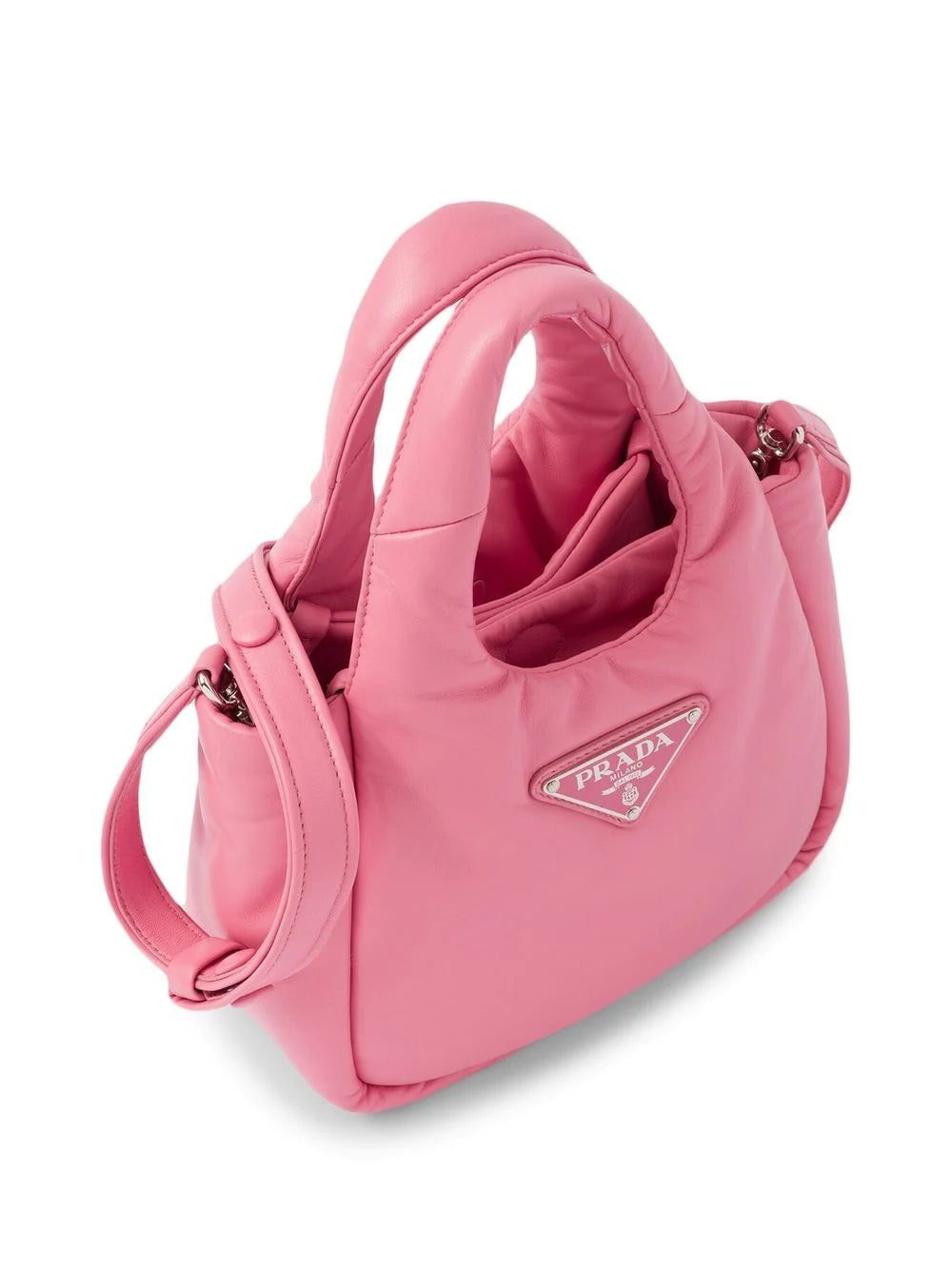 Prada showcases its playful side with this tote bag, designed with a lush padded design in a sweet shade of flamingo pink. The small tote is crafted in Nappa leather, and finished with a tonal Triangle logo plaque for a look that is instantly recognisable.
