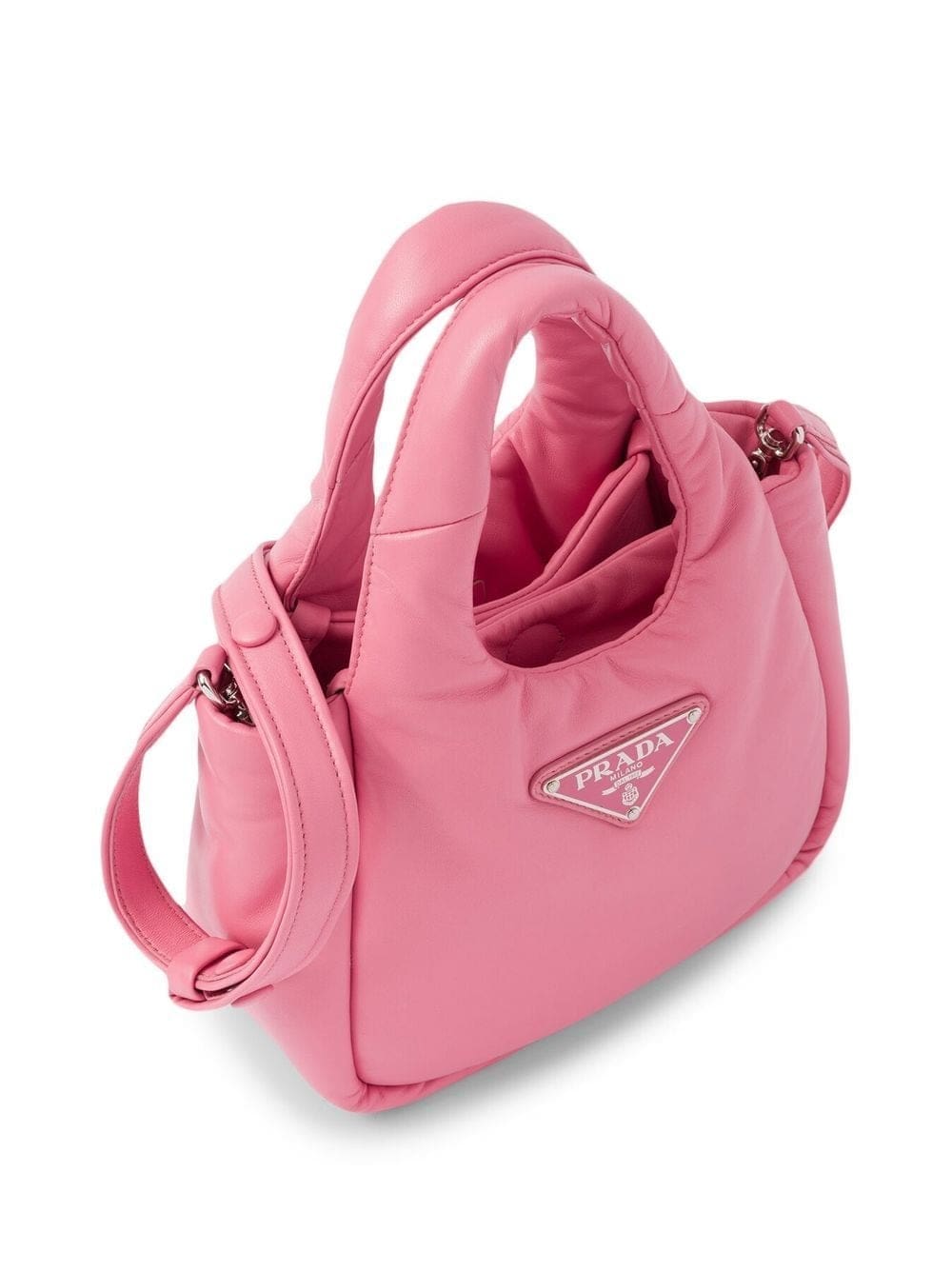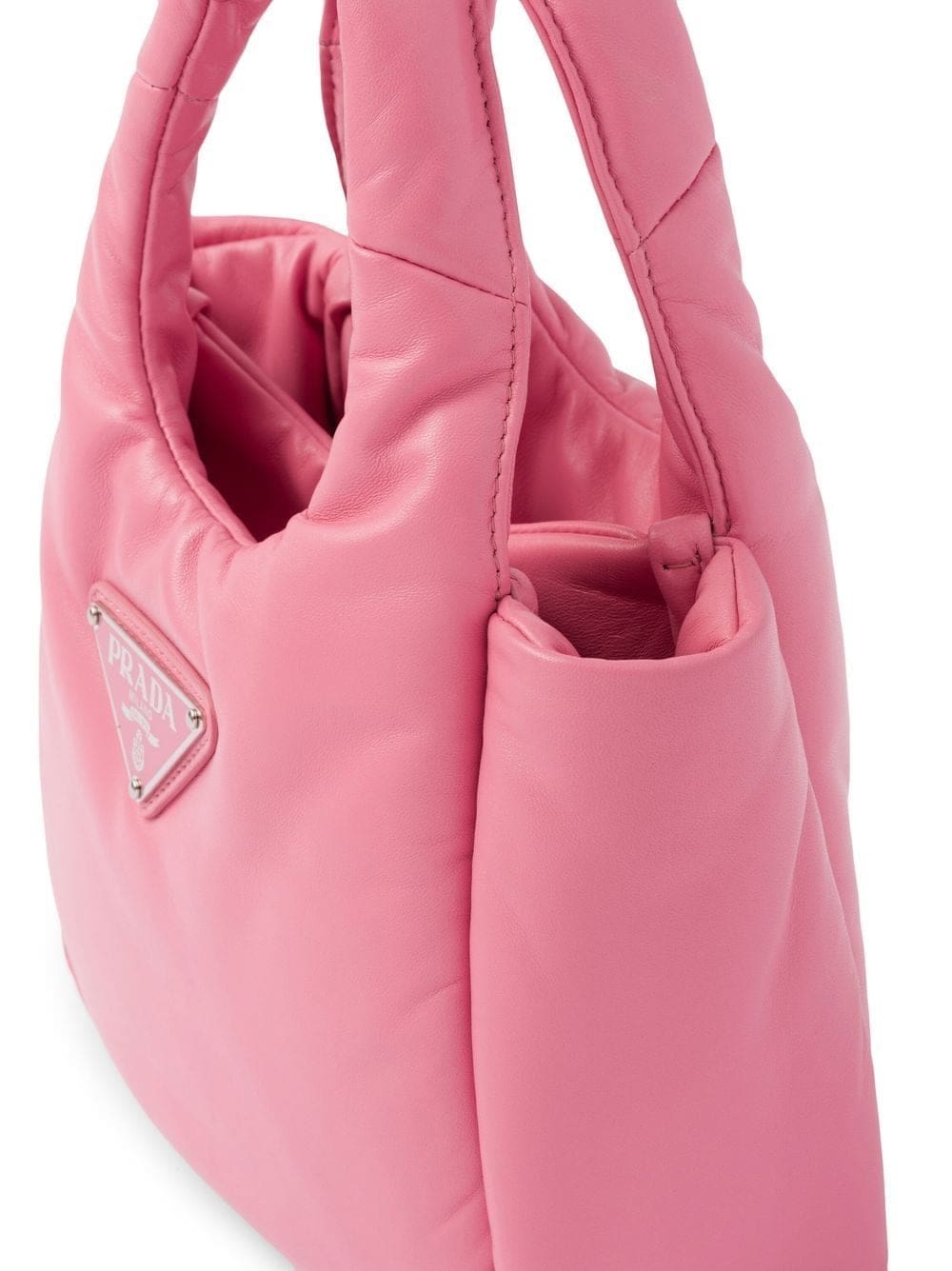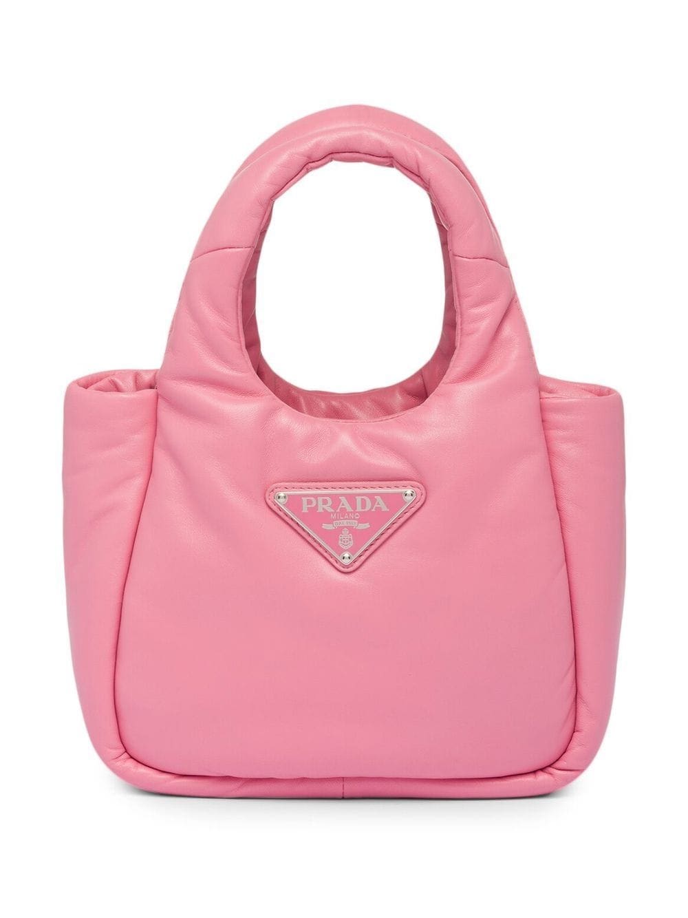Prada showcases its playful side with this tote bag, designed with a lush padded design in a sweet shade of flamingo pink. The small tote is crafted in Nappa leather, and finished with a tonal Triangle logo plaque for a look that is instantly recognisable.