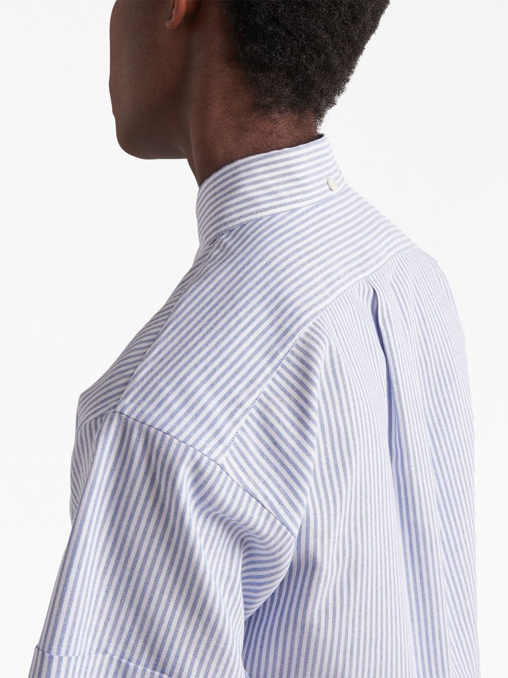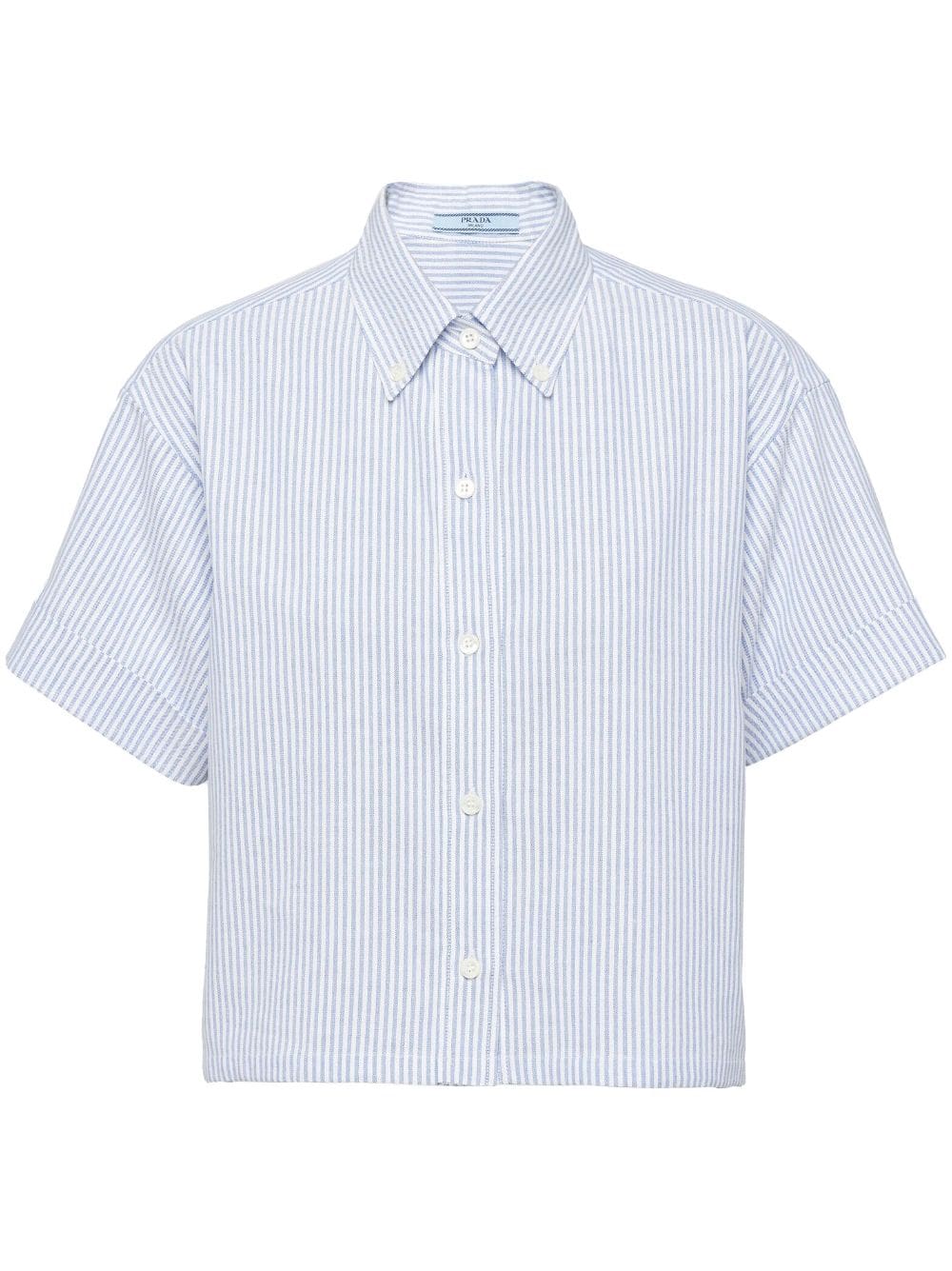 Prada maintains its preference for high-quality craftsmanship over obvious branding with this shirt. This white and blue striped iteration is made of cotton.