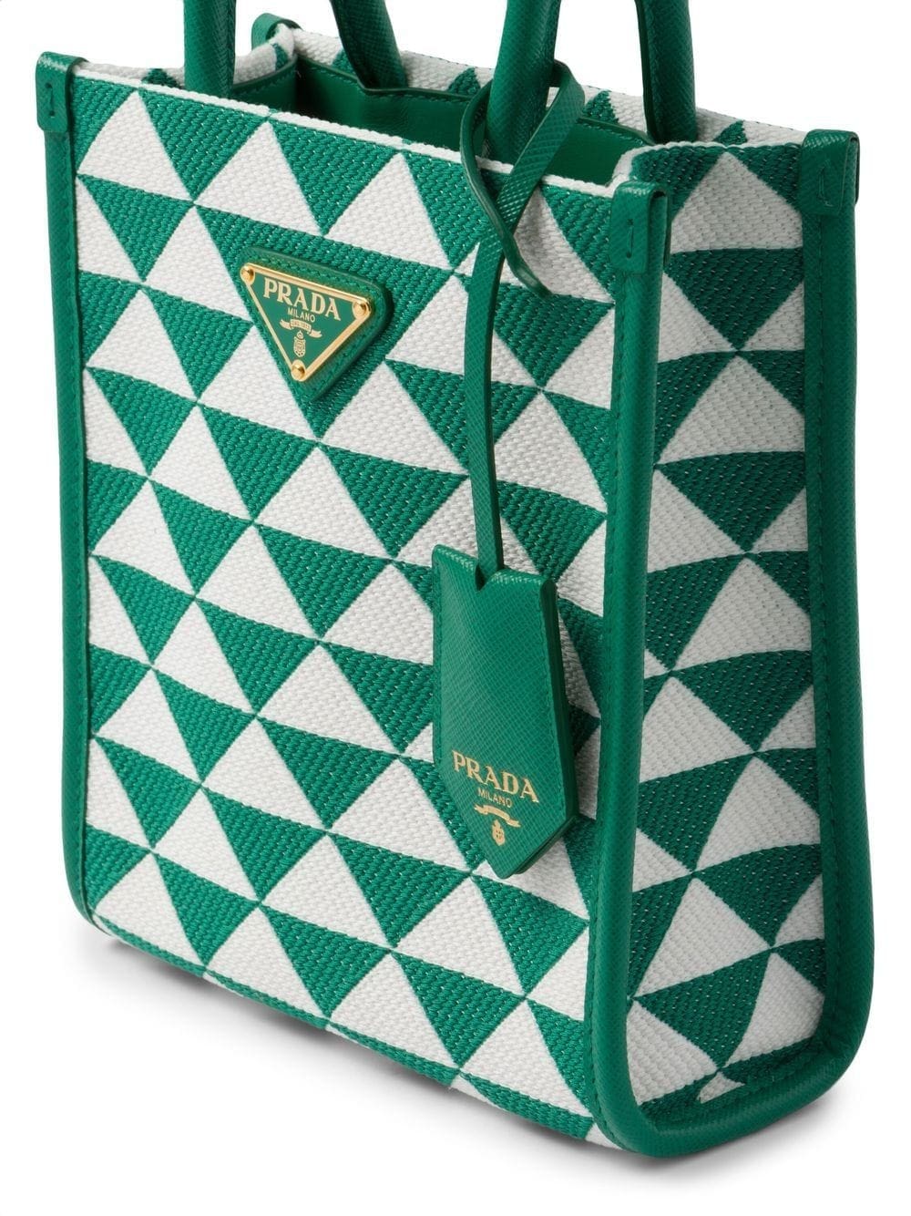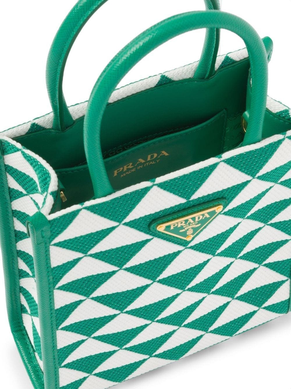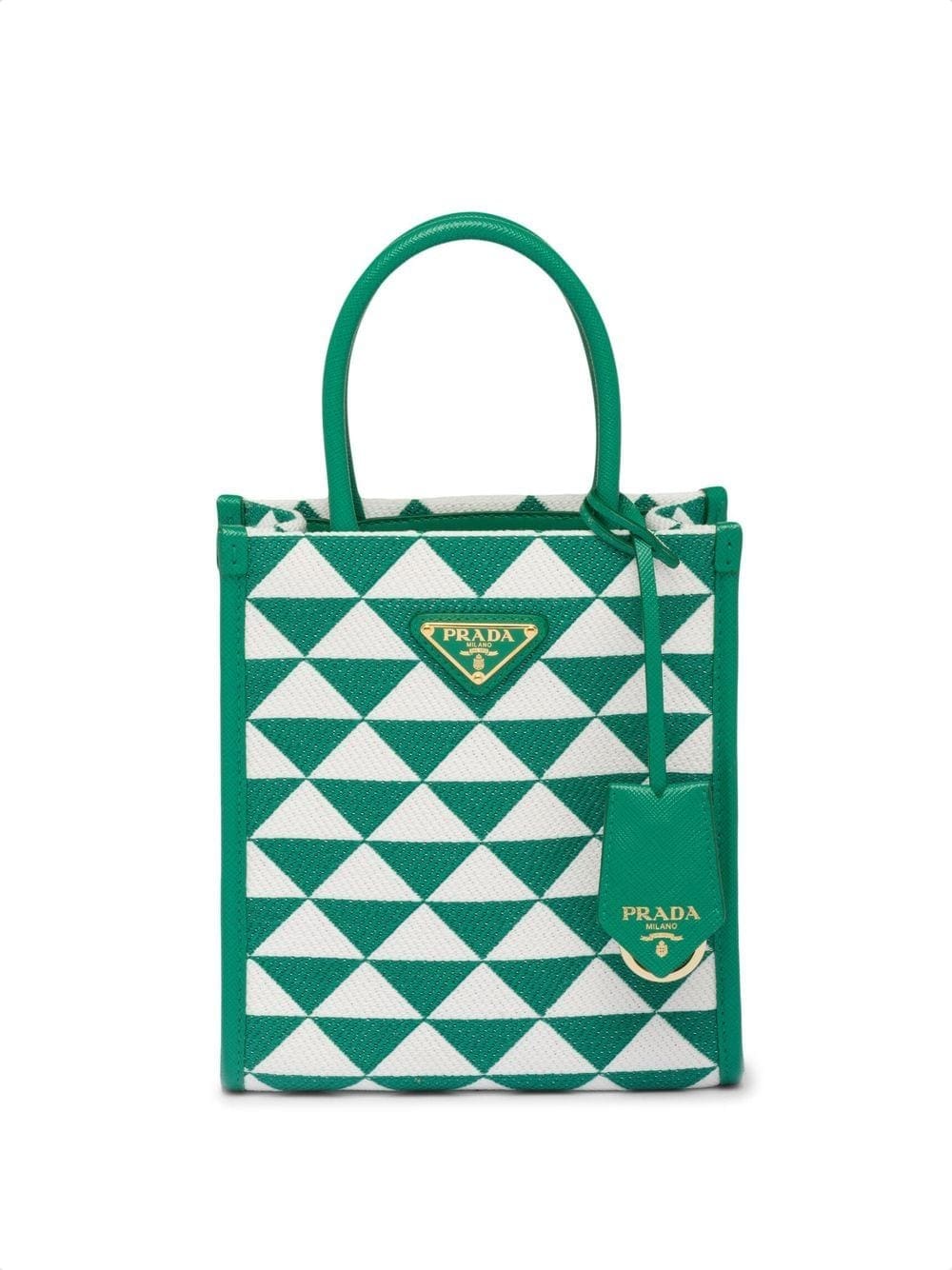 An emblem of Prada’s identity, the triangle logo inspires the modernist pattern that decorates this Symbole tote bag. In a further nod to the label's iconic motif, it's topped with an enamelled plaque.