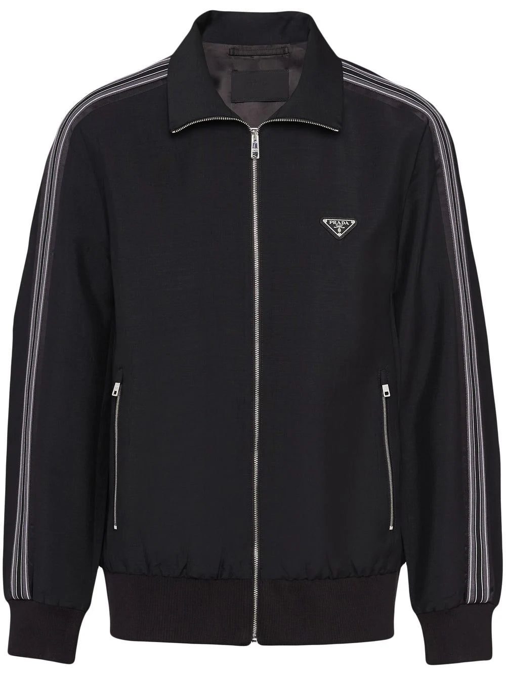 Prada offers effortless casual style with this track jacket. Crafted to a zip-fastening silhouette, it is finished with side-stripes for a sporty finish.