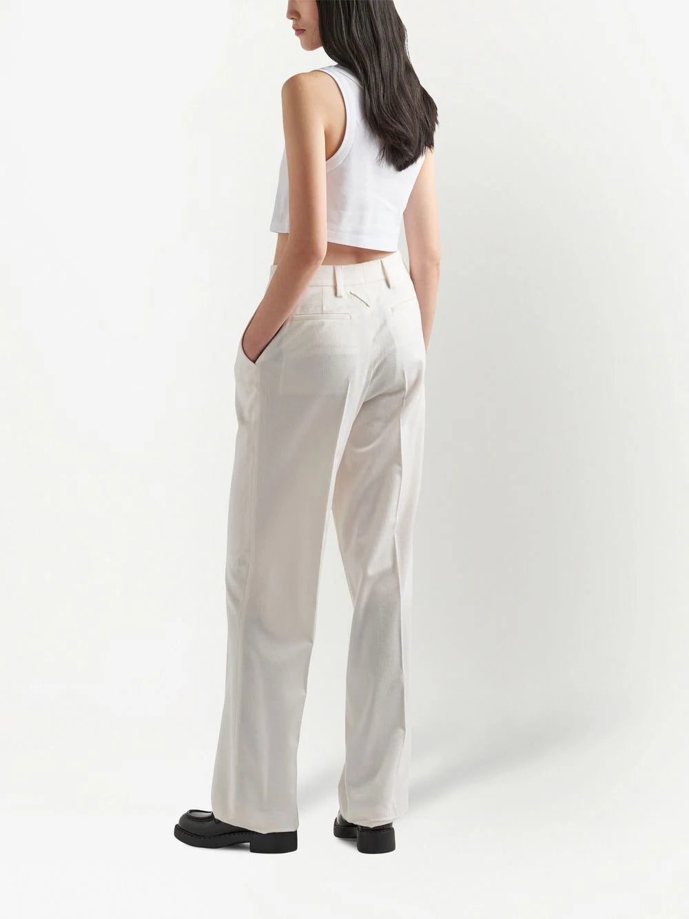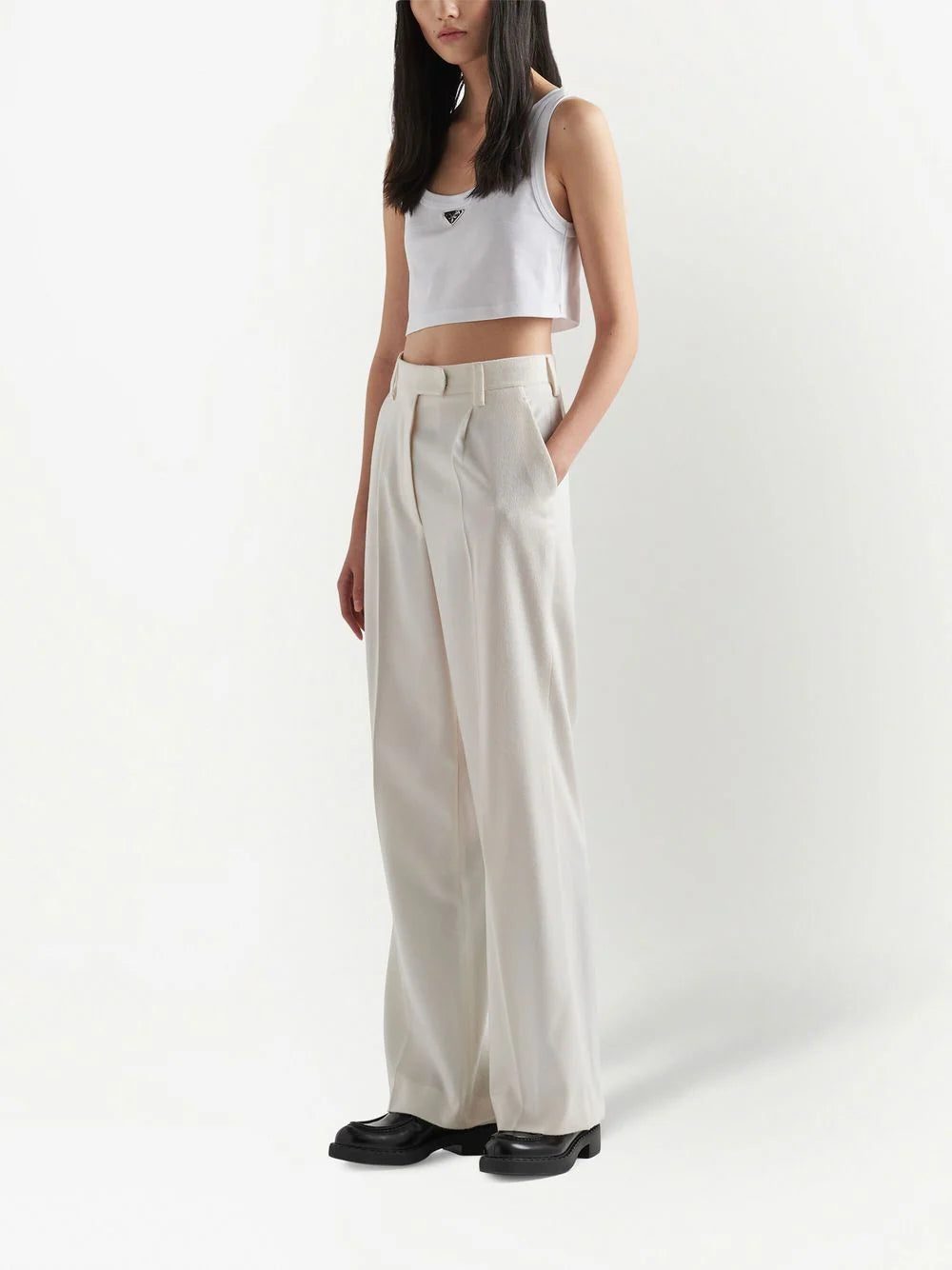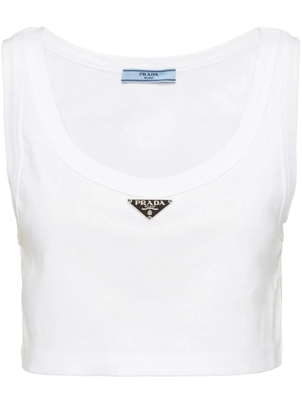 Showcasing a minimalist design, this Prada crop top boasts its signature logo plaque to the front and is complete with ribbing throughout.