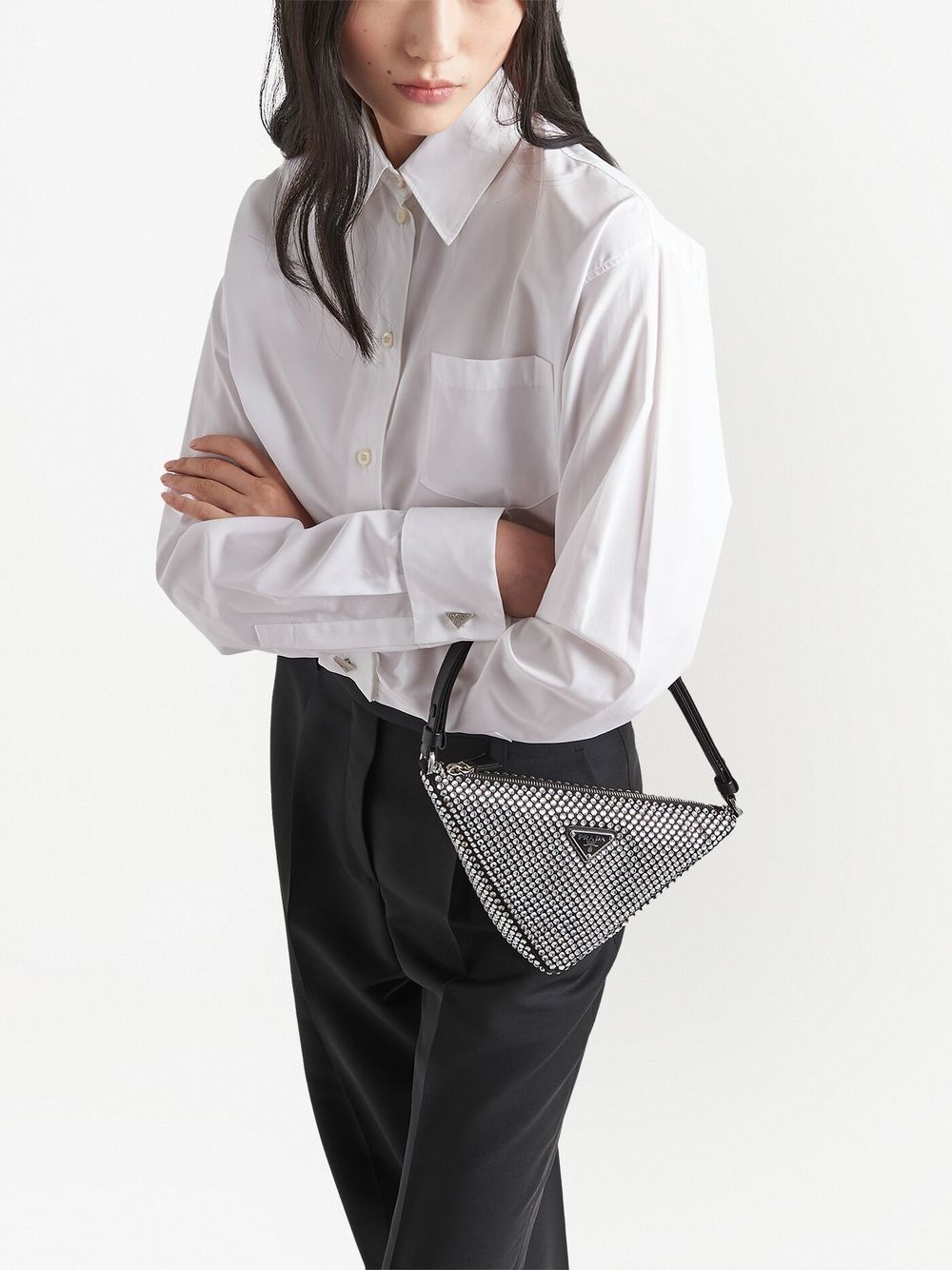 With this shirt, Prada continues to prioritise quality construction above overt branding. For minimalist appeal, this white version is delicately embellished with a signature silver-tone triangular logo.