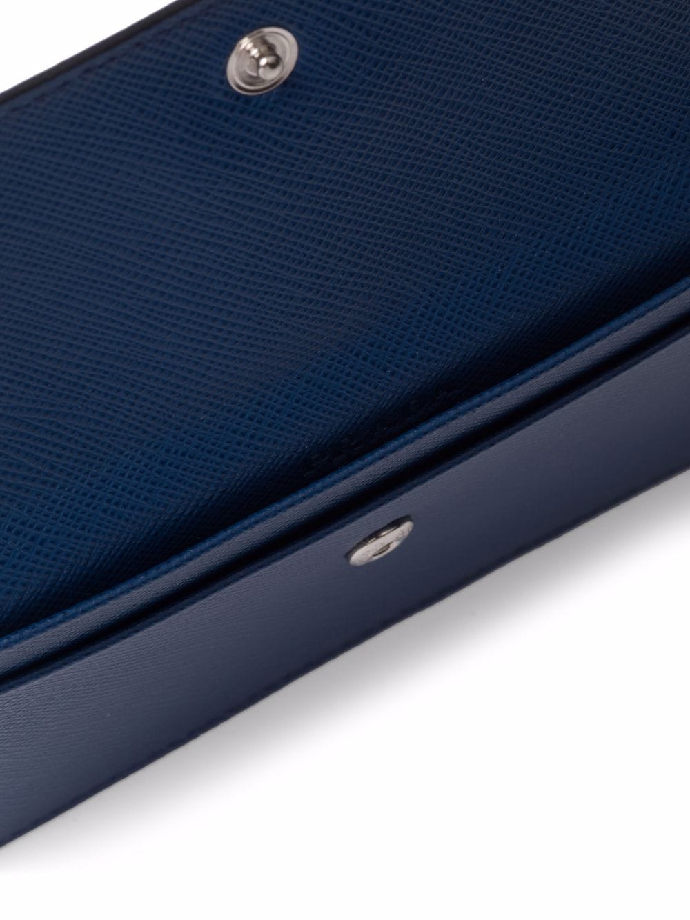 In a petrol blue colourway, this wallet is crafted from smooth leather, displaying Prada's commitment to excellent craftsmanship. In a compact design, this functional document holder features note compartments and is finished with the iconic triangle plaque for instant recognition.