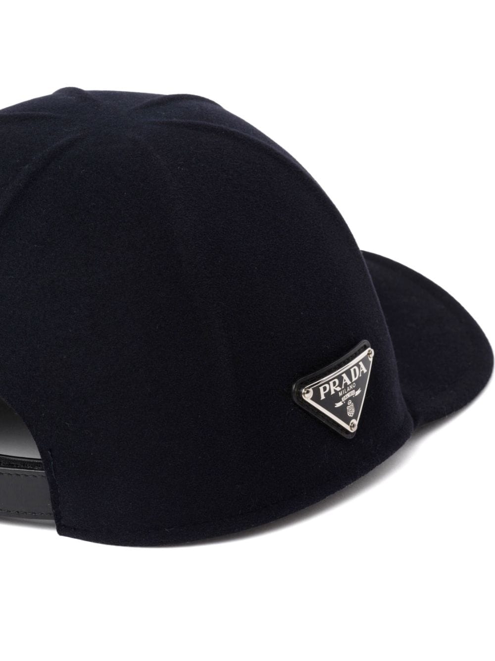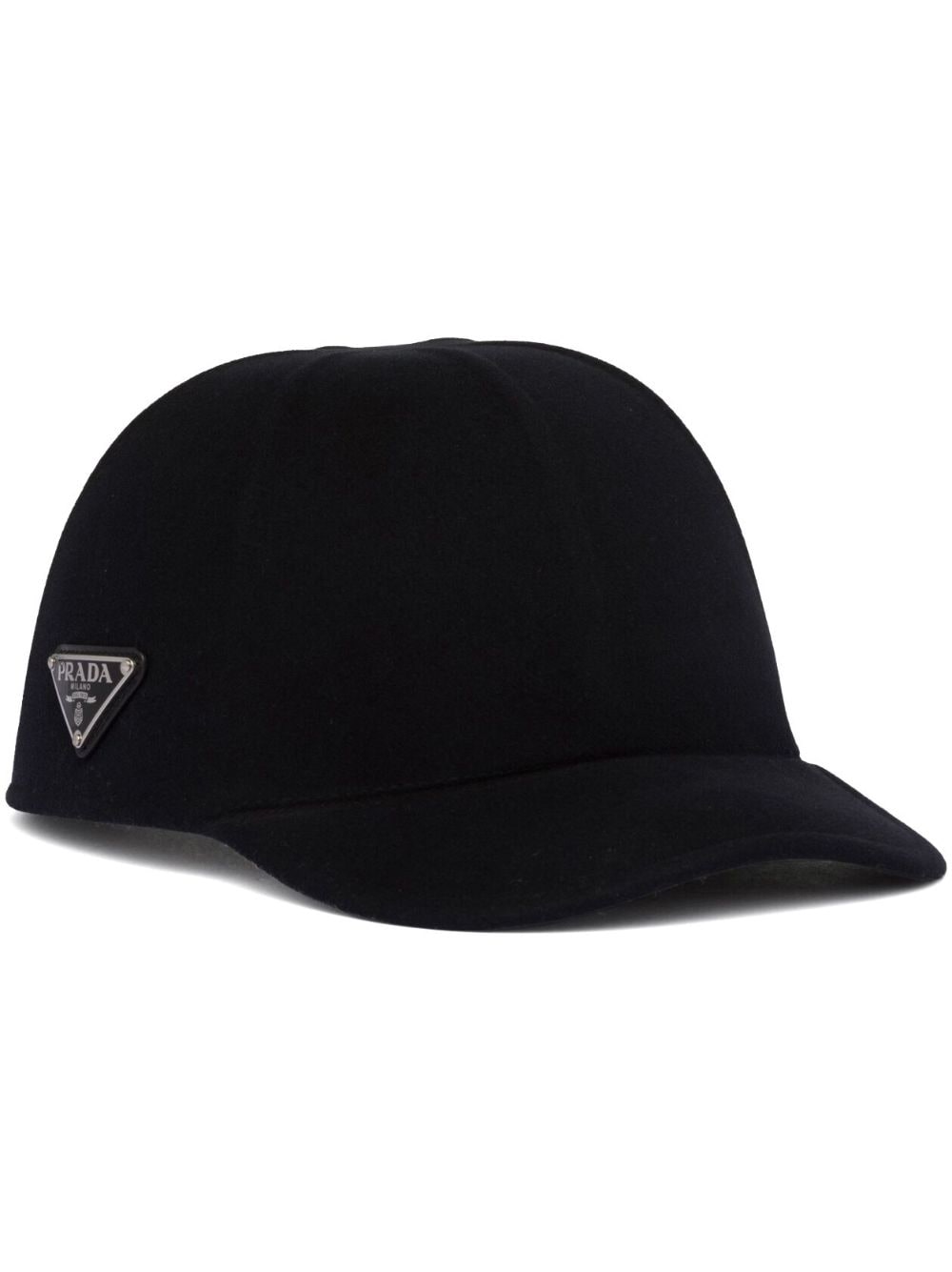 Prada's approach to branding is subtle, reflecting the brand's simple and elegant attitude. This is showcased in the signature enamel triangle logo on this wool-felt cap.