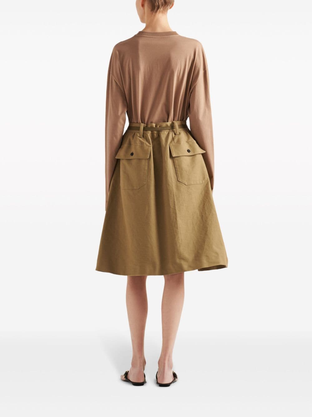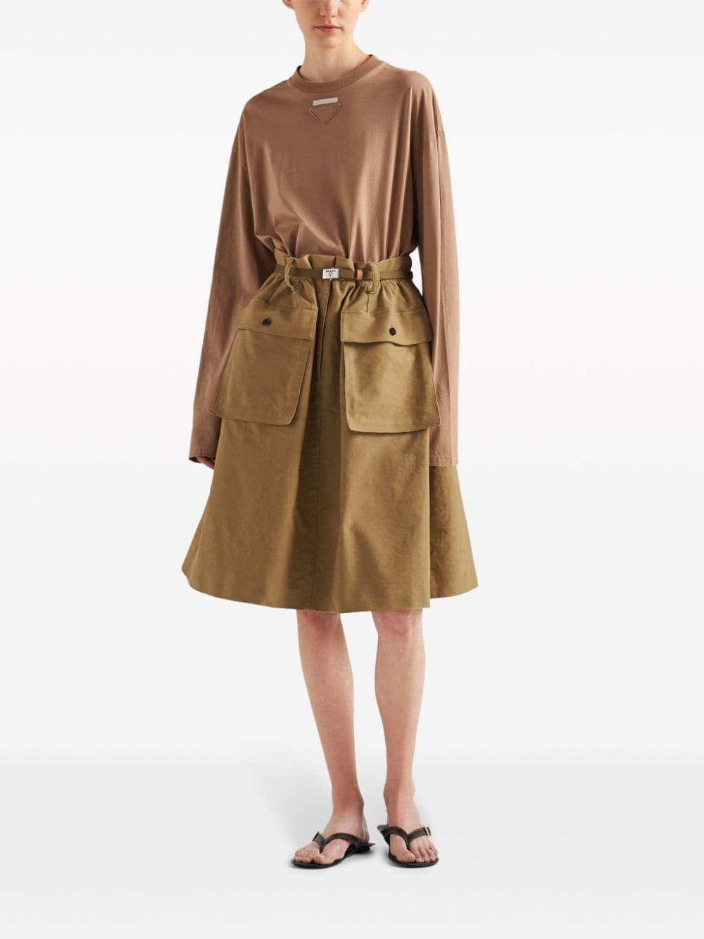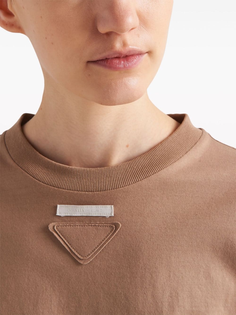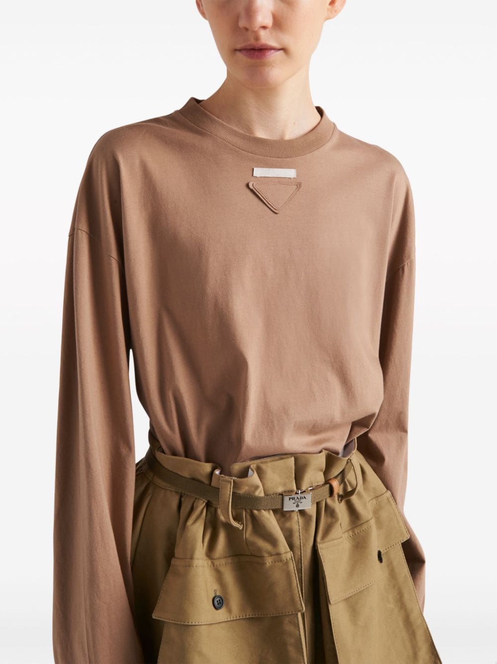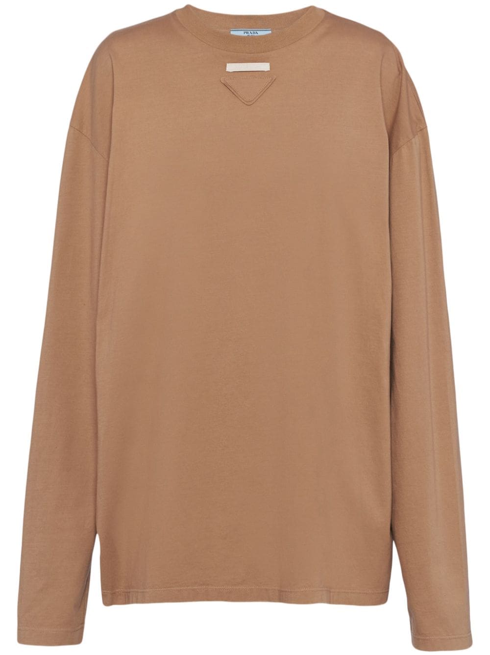 Prada's penchant for subtle branding is evident in the design of this long-sleeved T-shirt. Cut from cotton jersey in a light shade of brown, it's subtly detailed with a triangle logo appliqué on the chest.