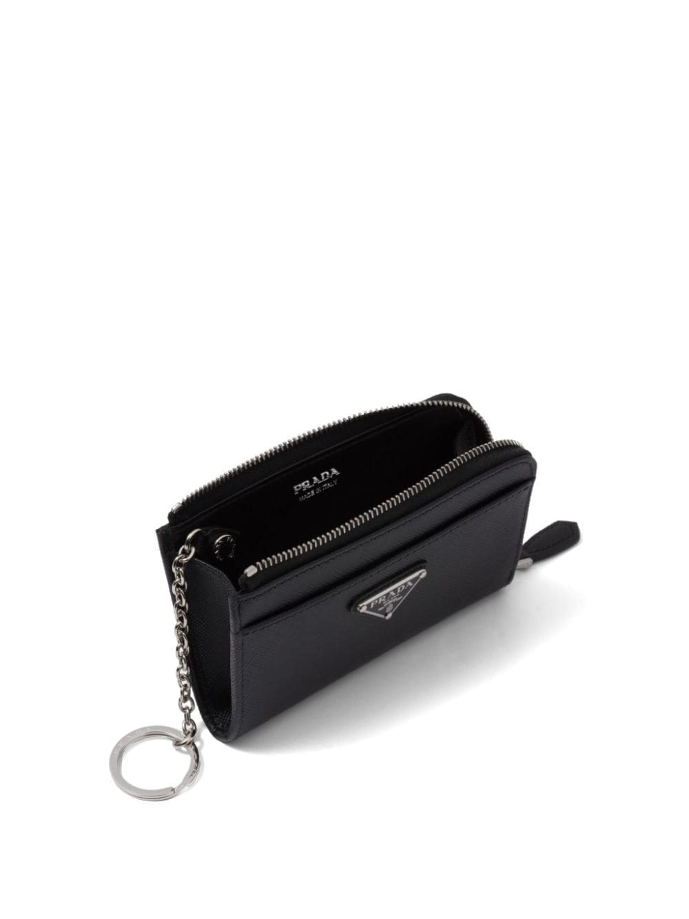 Prada triangle-logo leather keychain