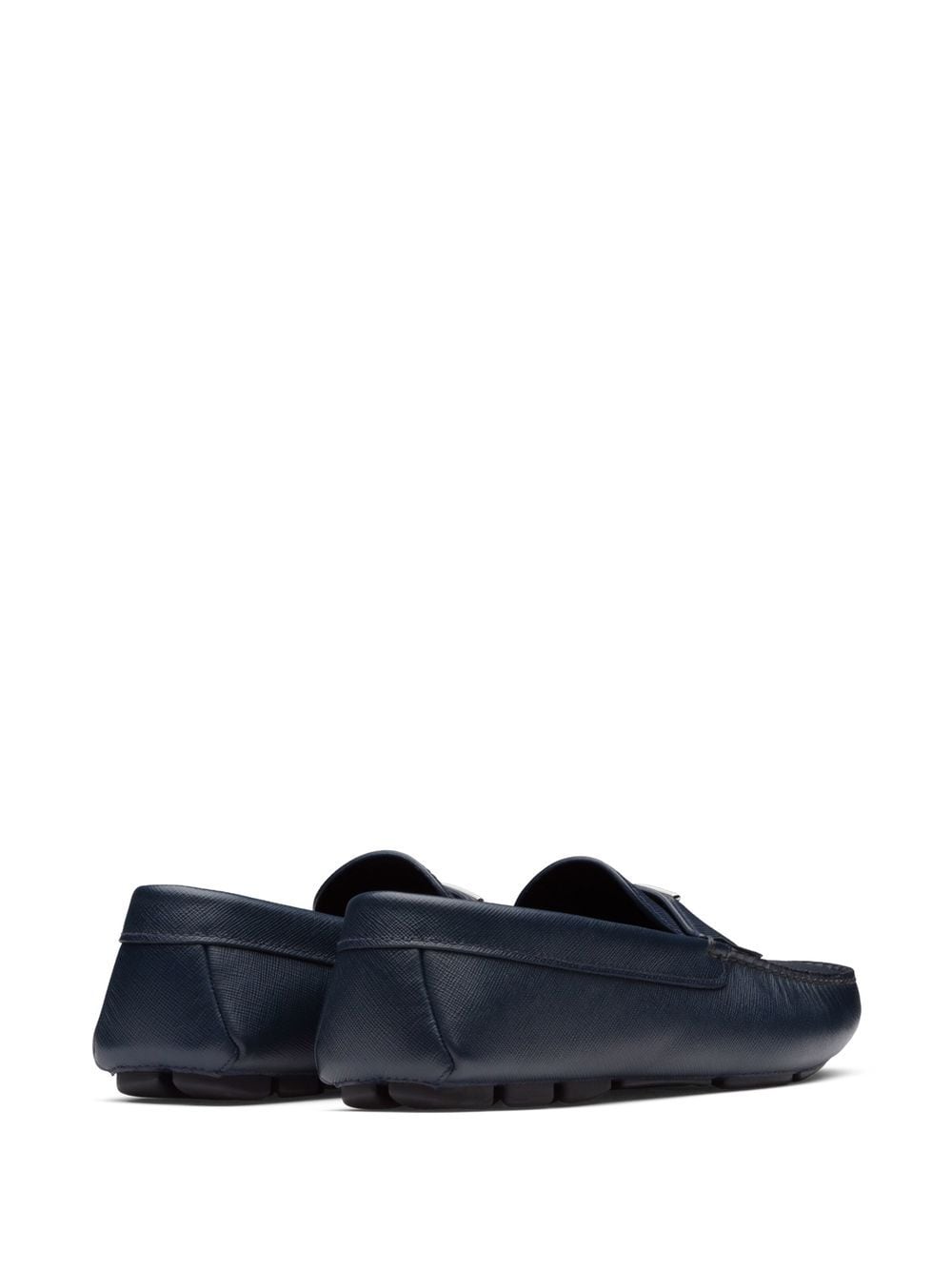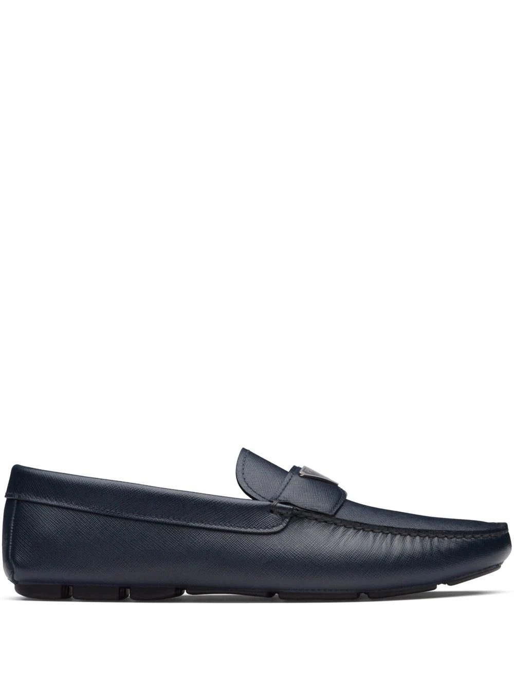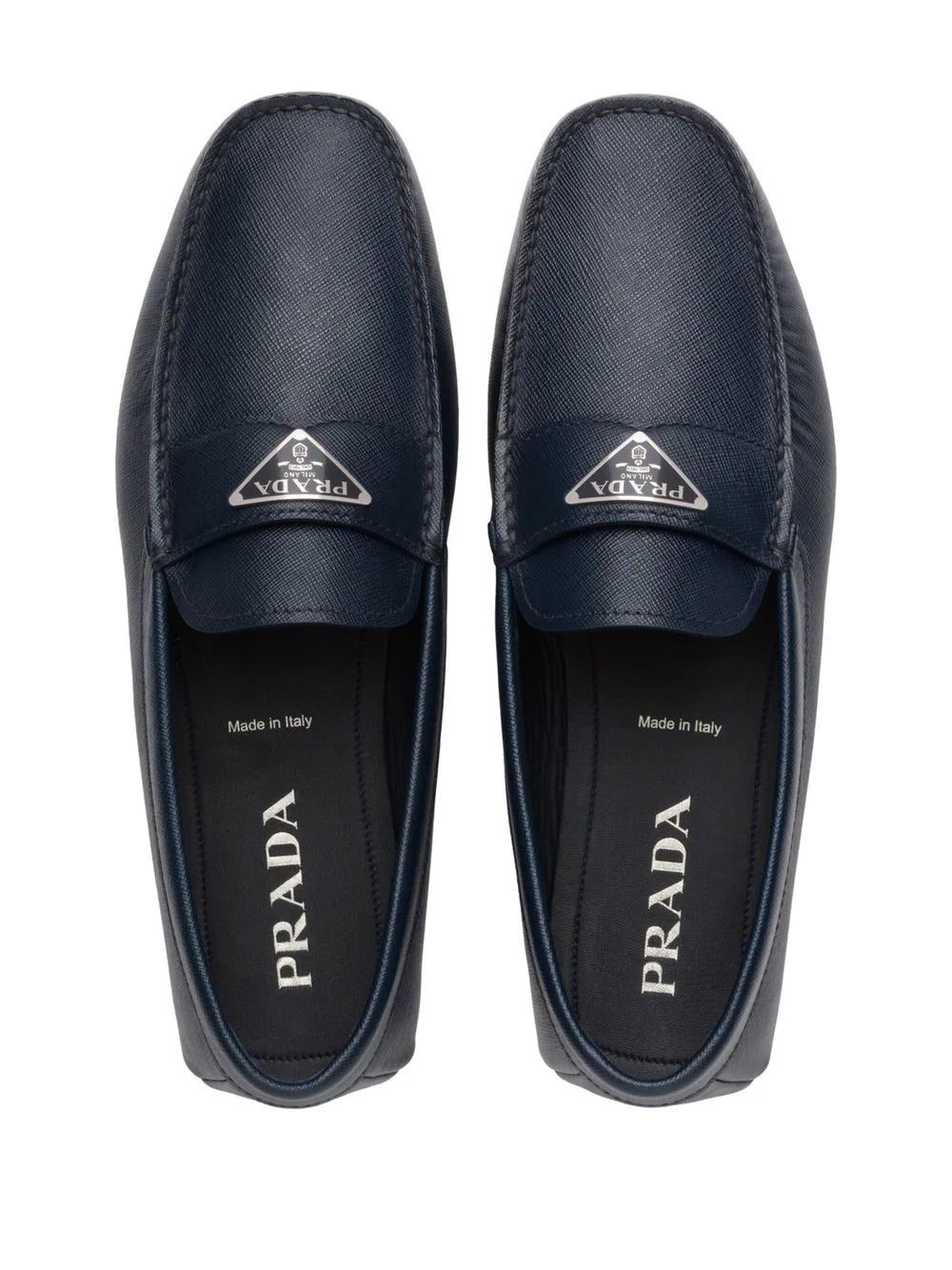 Crafted from soft leather, these Prada loafers pair a classic upper with a modern ridged rubber sole. This speaks to Prada's affinity for hybrid designs and contrasting aesthetics.