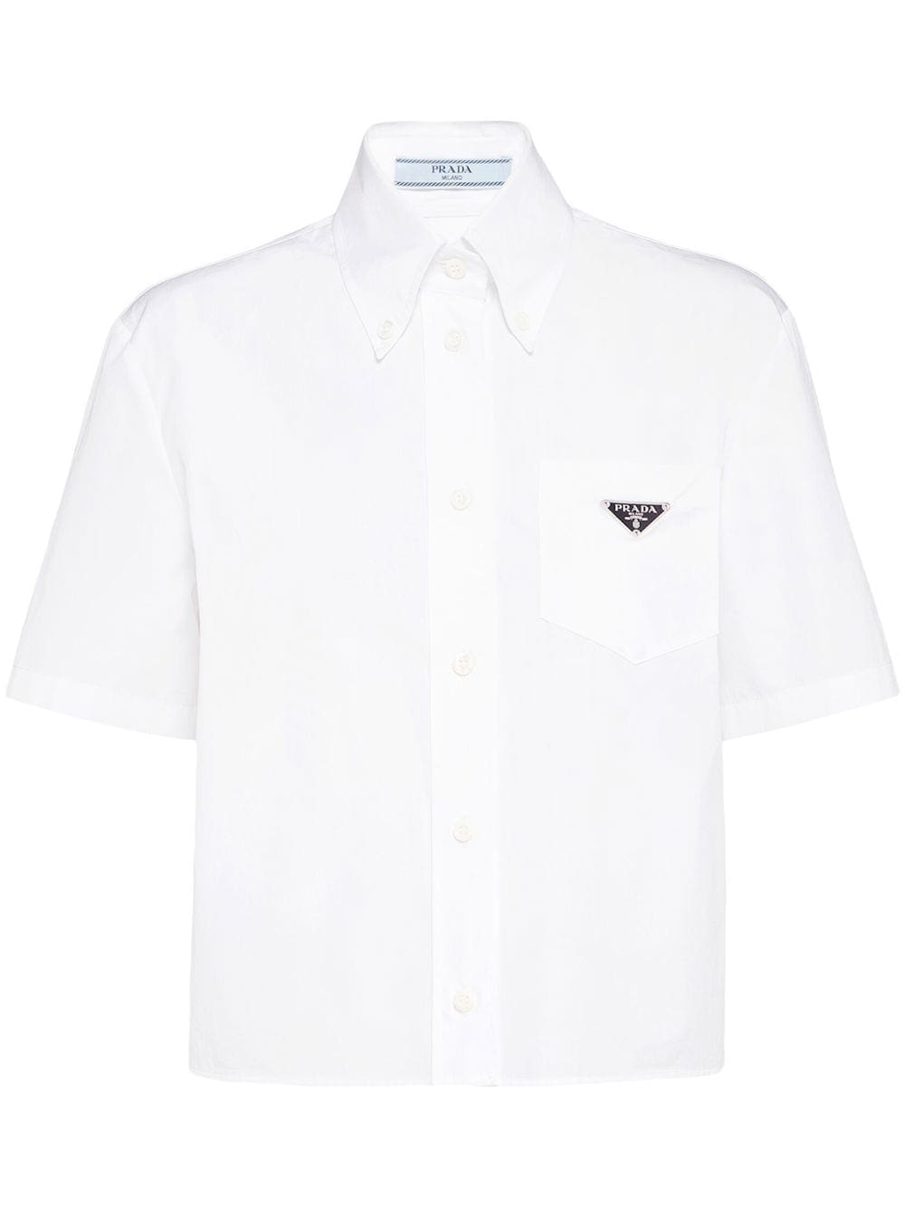 For SS23, Prada presents a classic silhouette imbued with contemporary touches. The brand's iconic enamel triangle logo is present at the chest, while the cotton construction is cut to a modern cropped length.