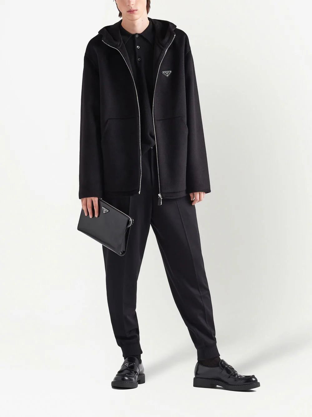 Prada triangle-logo zip-up hoodie