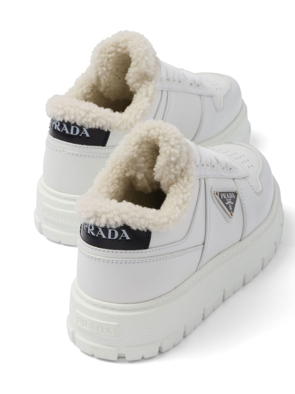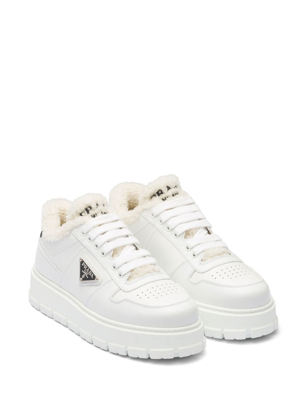 Prada's triangular logo plaque is an iconic motif for the brand that transcends seasons and trends thanks to its traditional shape and refined lettering. Finding a home on the side of these calf leather sneakers, the low-top pair evokes casual refinery at its best and is completed with a faux fur lining.