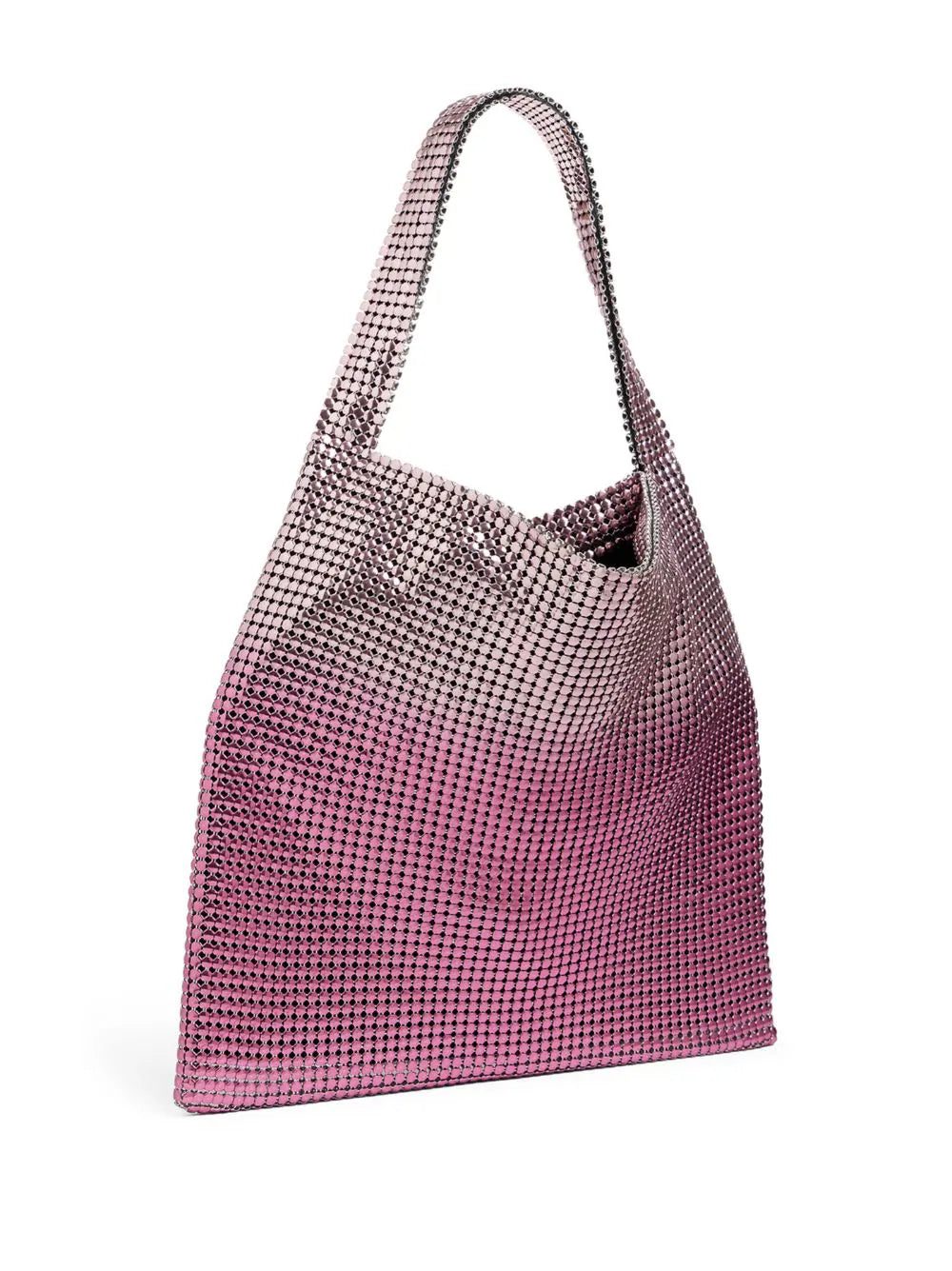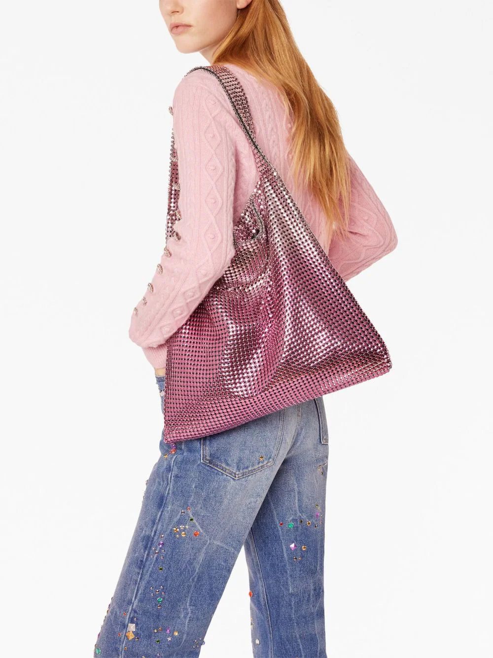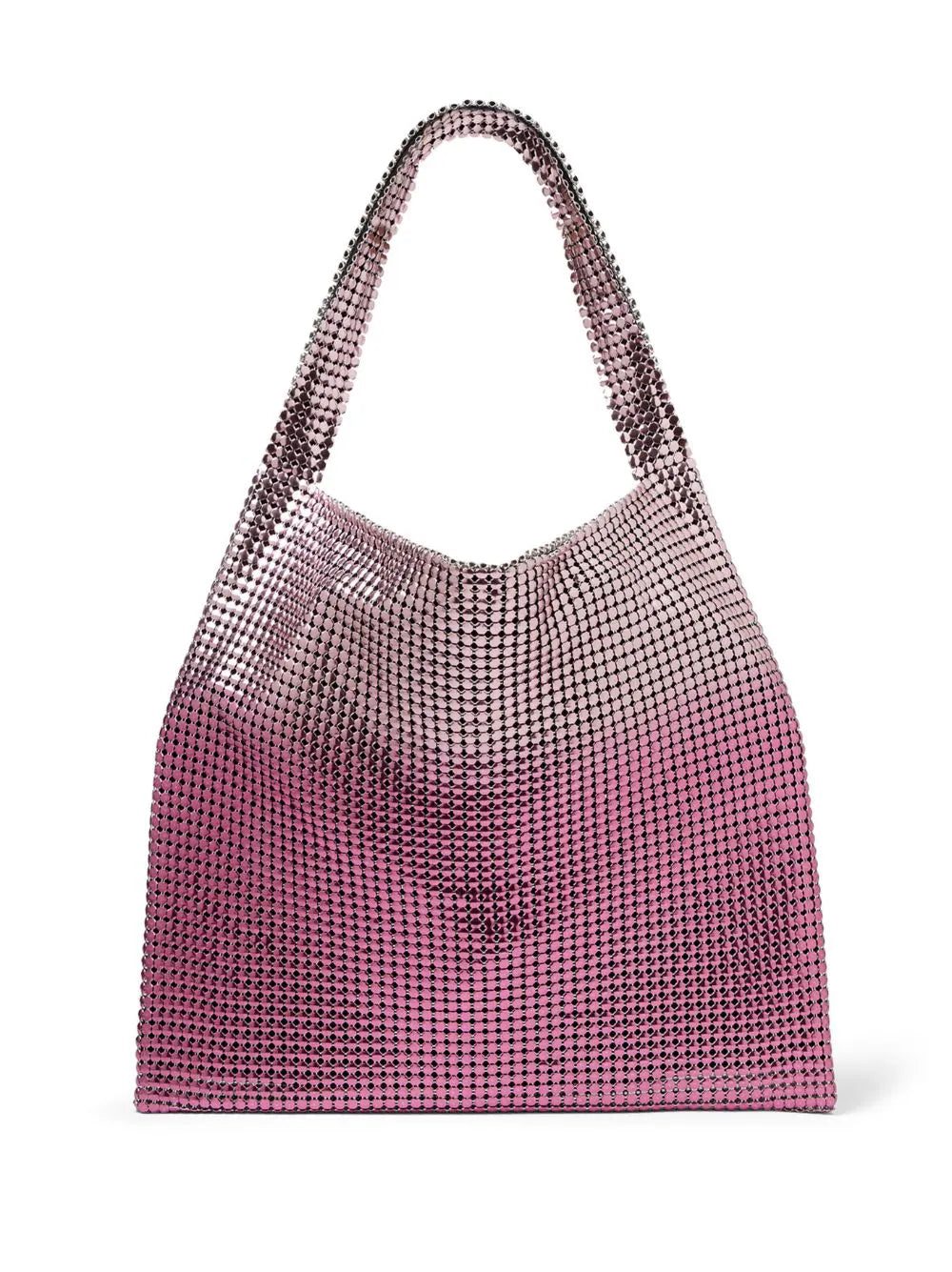 Defined by its metallic mesh construction, Paco Rabanne's Pixel accessory line includes some of the house's most iconic and coveted silhouettes. Here, the Pixel tote bag in a gradient-pink iteration boasts a slouchy shape that contrasts with its glistening exterior.