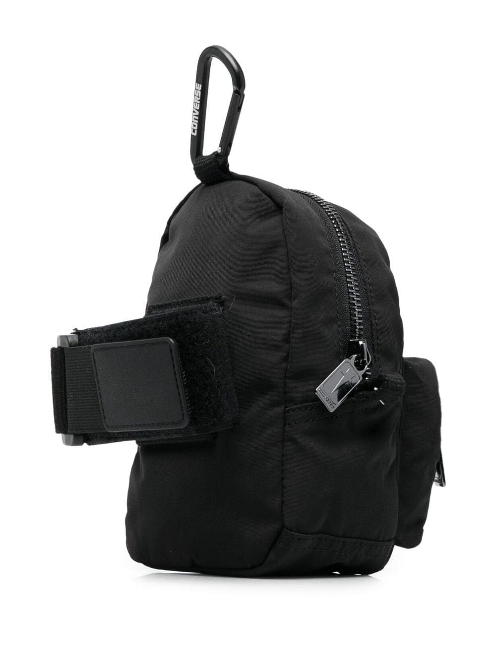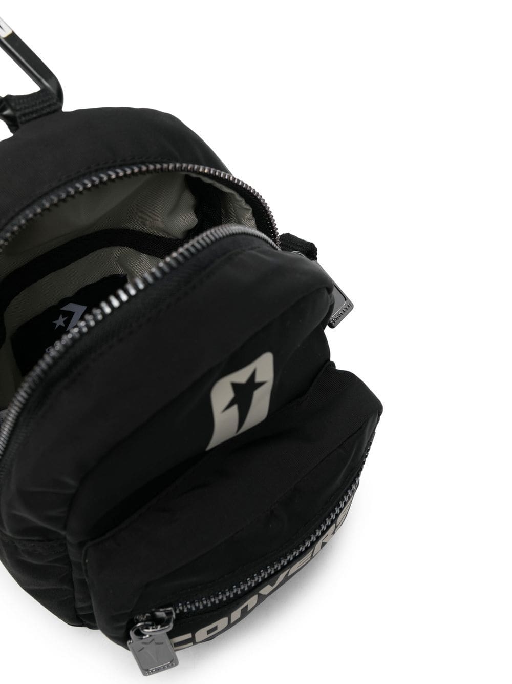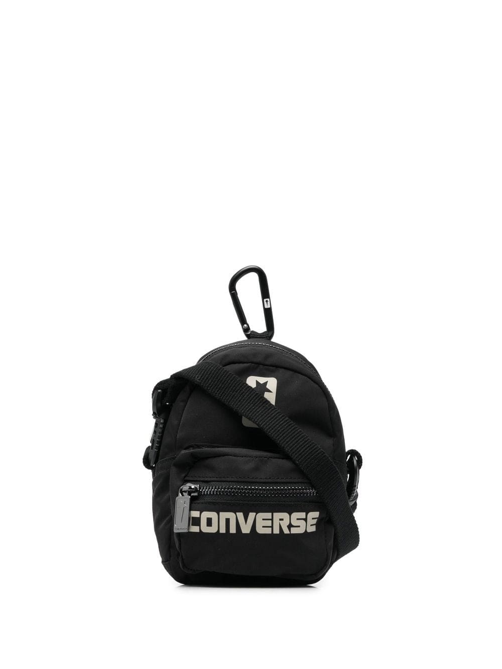 black/white logo print to the front front zip-fastening pocket top zip fastening adjustable detachable shoulder strap carabiner attachment