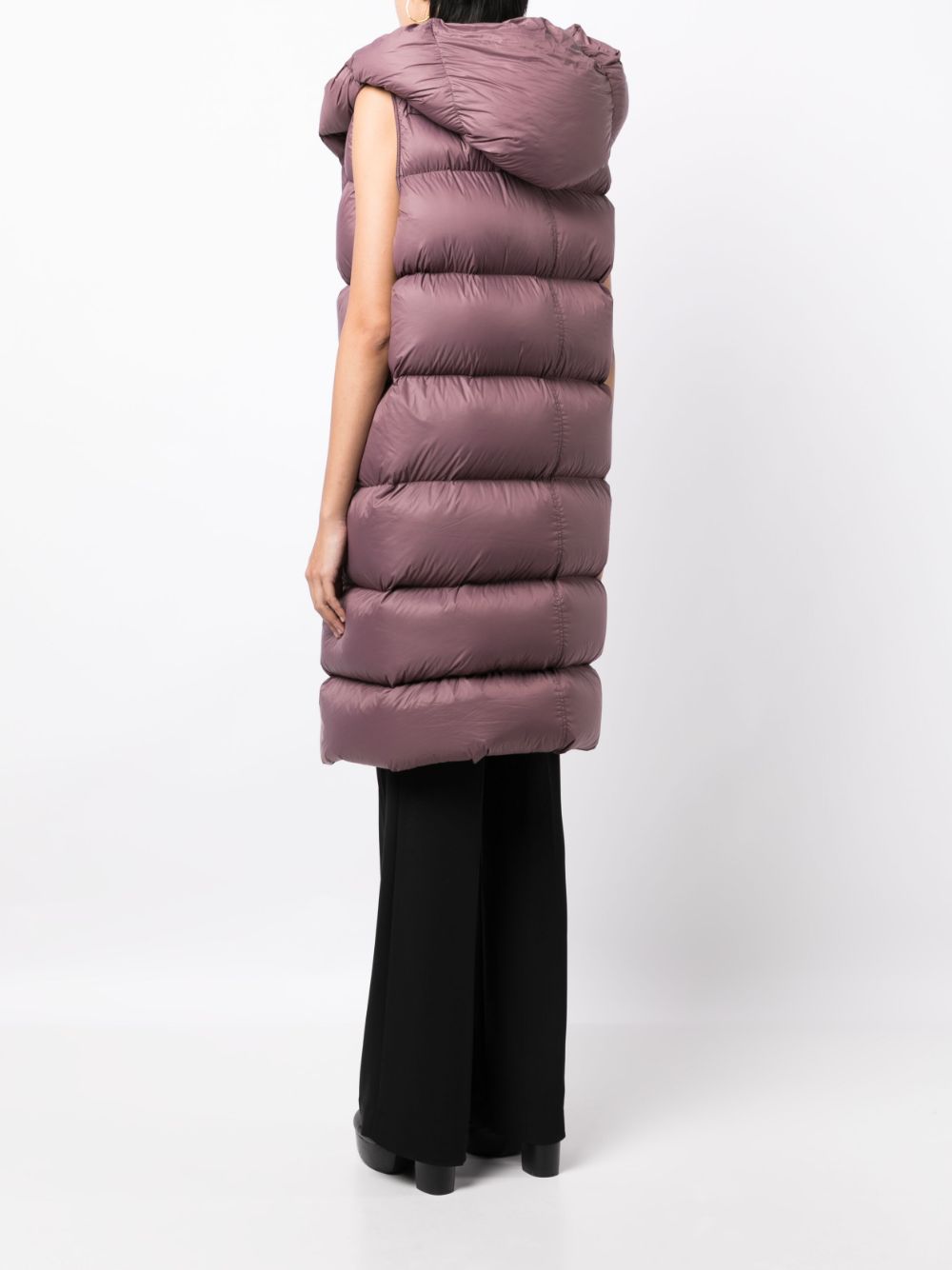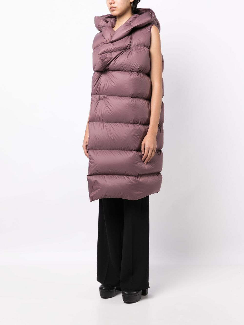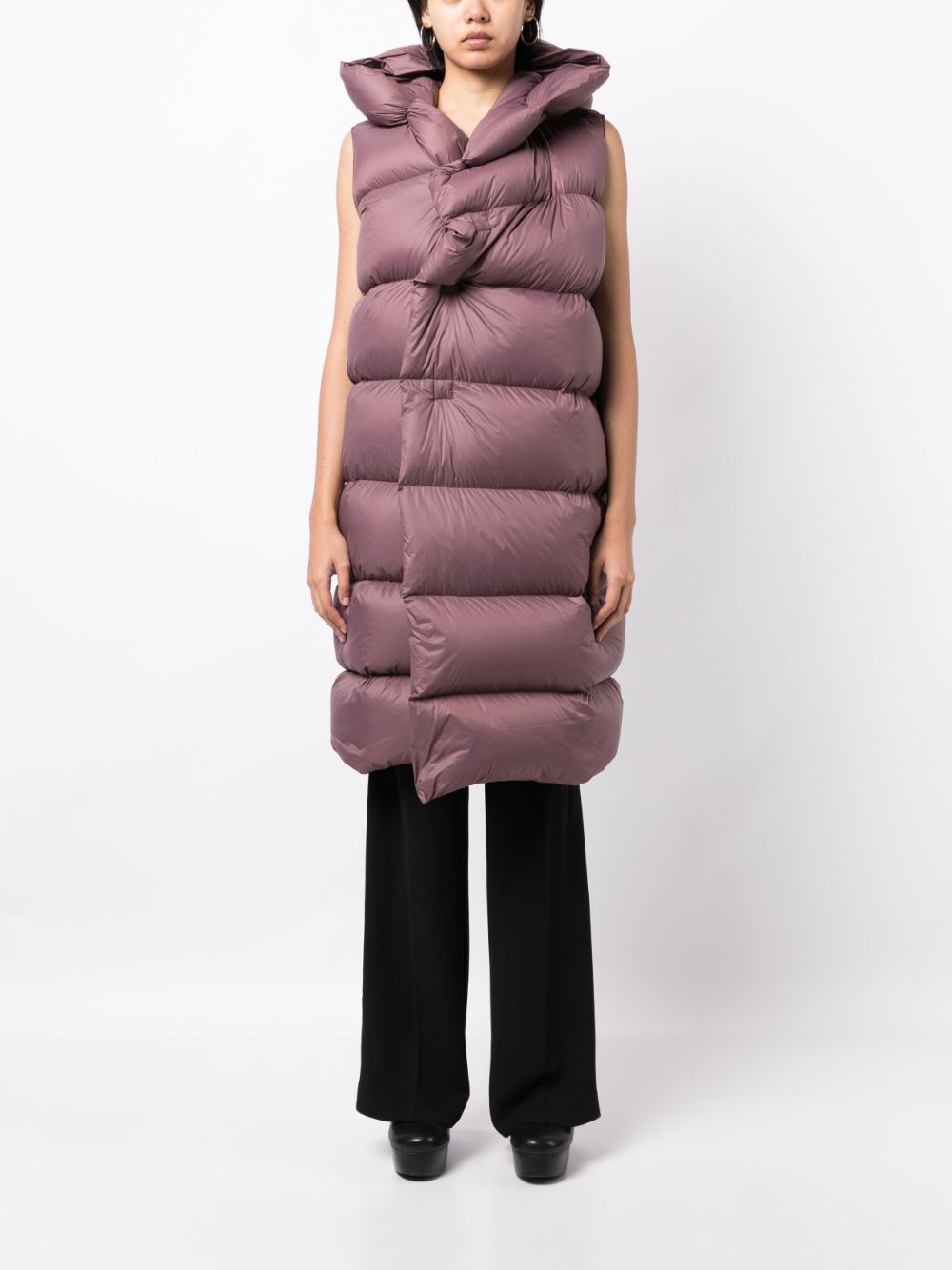 Part of Rick Owens' Luxor collection, this amethyst purple gilet is defined by its oversized silhouette enhanced by a goose down padding that lends its sleeveless silhouette insulation and warmth. Fastening at the front with concealed press-stud buttons, it highlights the brand's avant-garde exploration of outerwear.