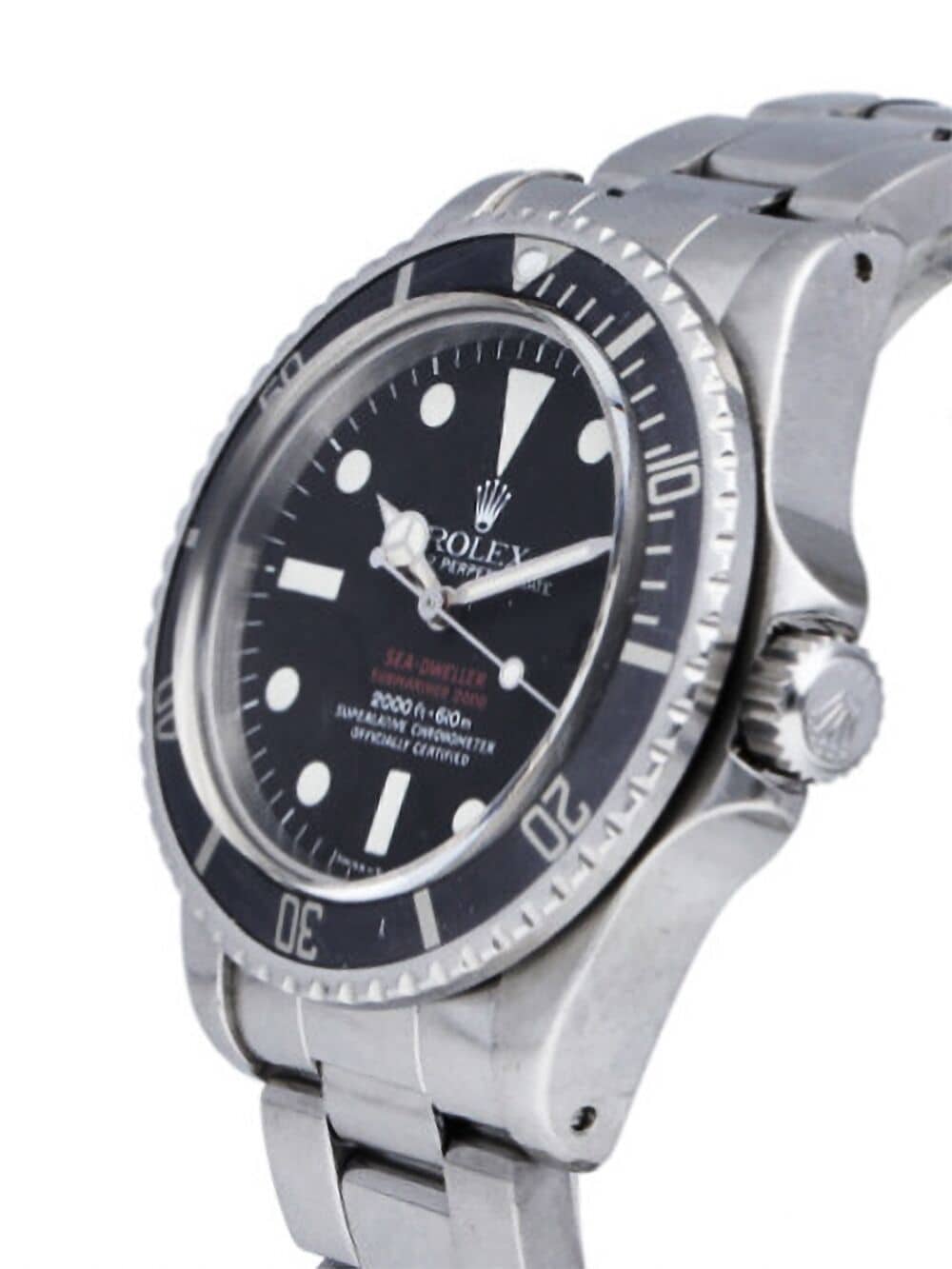 The Swiss fine watch specialist Rolex is known for pushing boundaries with revolutionary horological know-how. The Sea-Dweller range was first officially presented in 1967 as a result of the watchmaker's desire to create a model that can withstand deep dives, fitted here with a patented helium escape valve that distinguishes this 1979 pre-owned Sea-Dweller 40mm from other water-resistant timepieces out there.